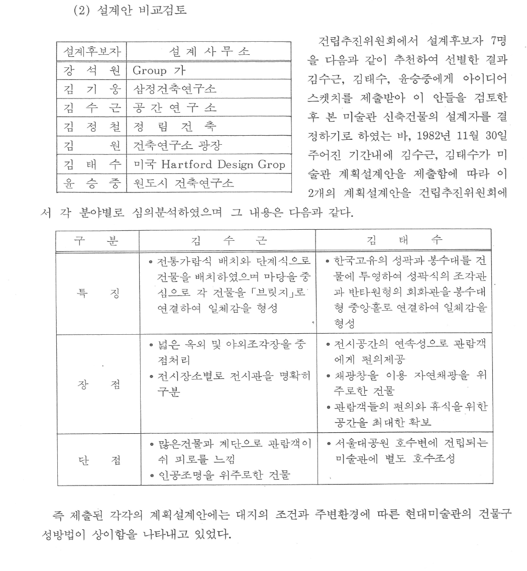 시간이 흐른 지금, 오래된 미술관은 변화를 요구받습니다. 건물은 과거의 원대한 목적보다는 개개인의 추억이나 애착에 의해 생명력을 지니고 있는 것처럼 보입니다. 마치 40년 동안 한자리에서 같은 옷을 차려입고 누군가를 기다리는 사람 같습니다. 어딘가 쓸쓸한 느낌도 있고요. 이것이 단순히 미술과 건축의 속도 차이로 인한 것인지, 혹은 기저에 깔려 있던 건축가 개인의 의도로 인한 것인지는 가늠하기 어려웠습니다. 우리도 이번 작업에 임하며 어떤 객관적 지표보다는 경험과 기억에 기대 미술관의 요소들을 수집하고 그 결과물을 ‘미술관 조각 모음’으로 묶어 미술관의 모습을 묘사했습니다.