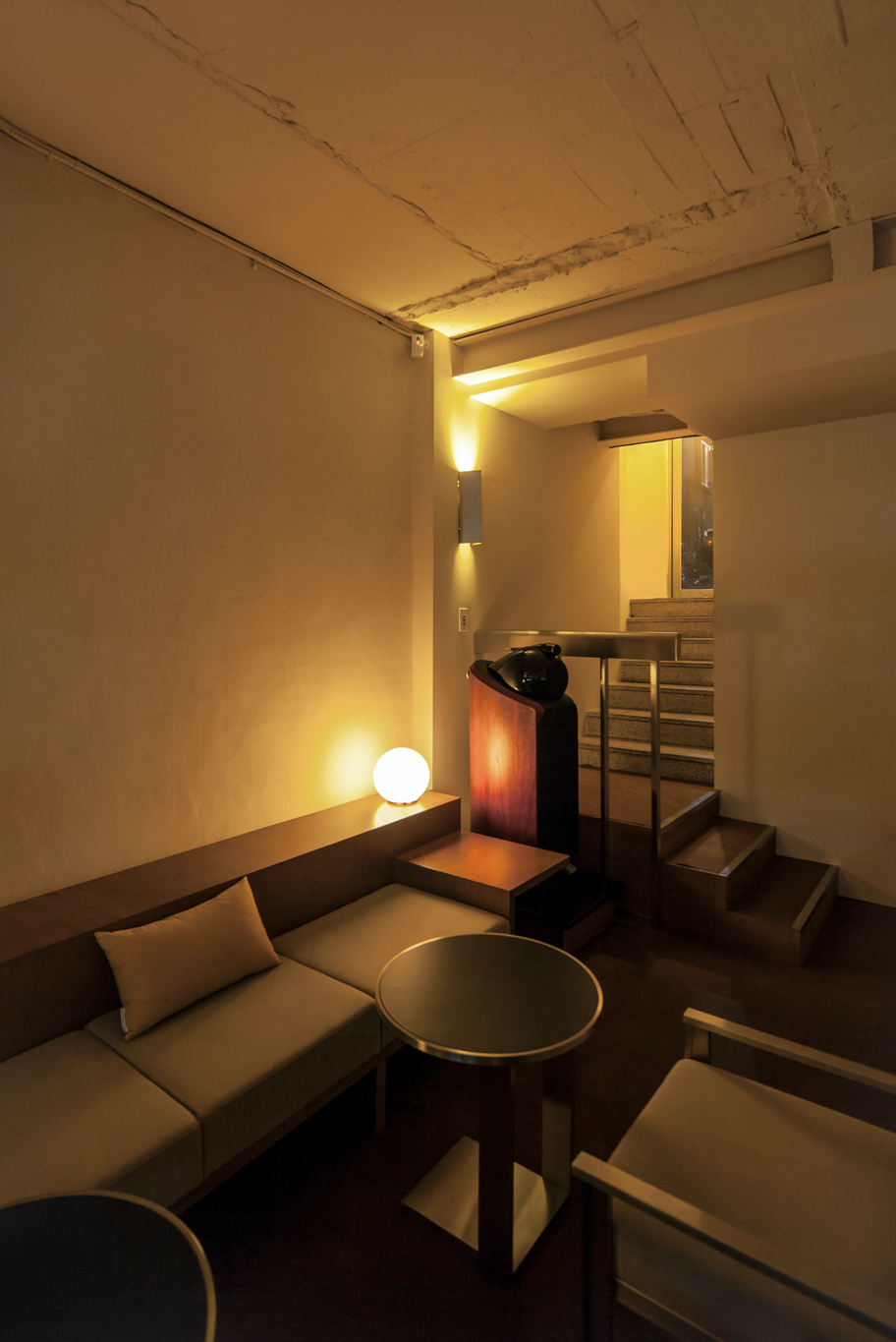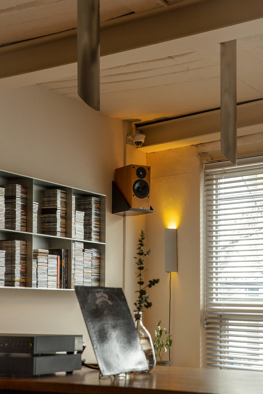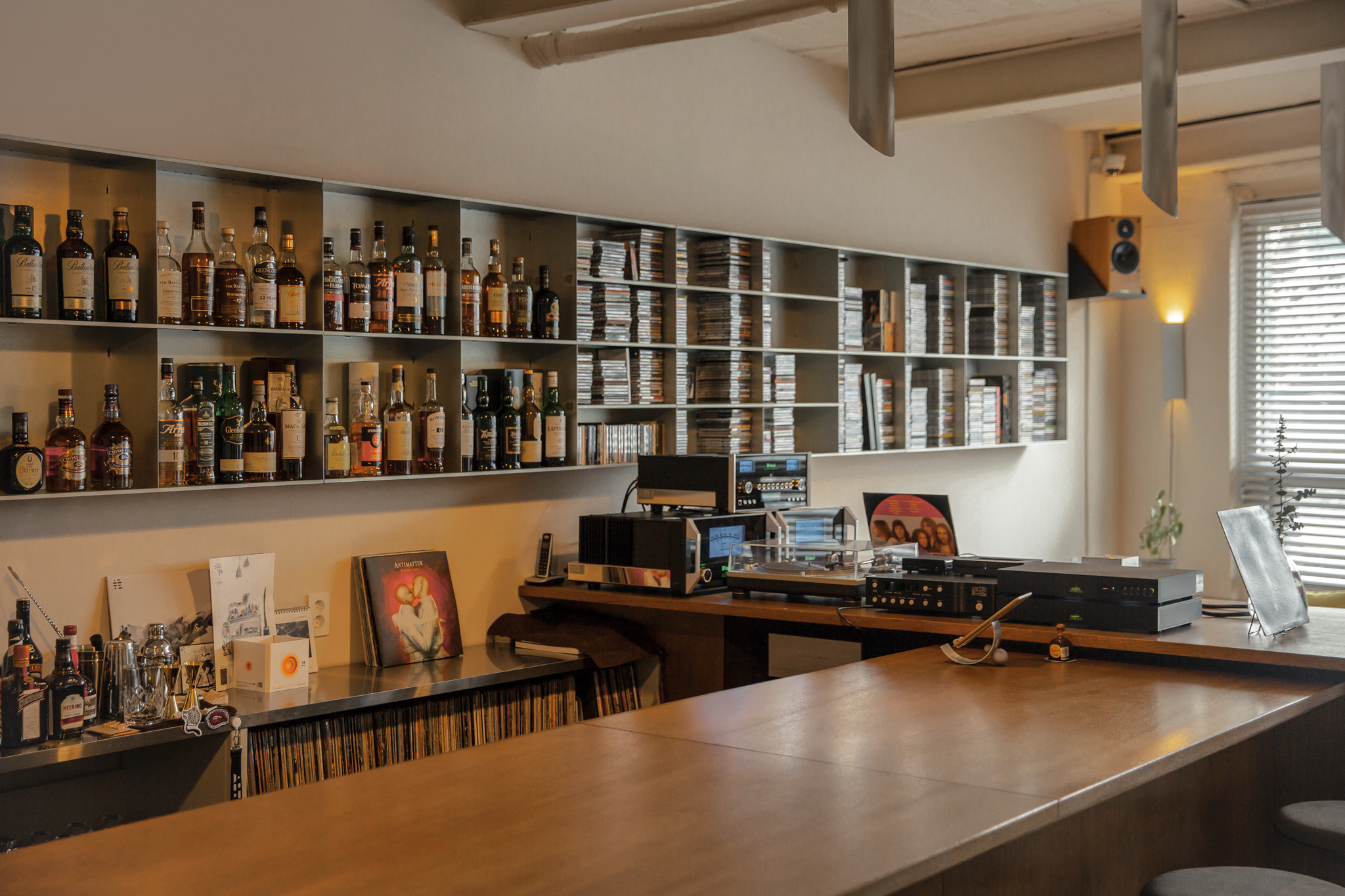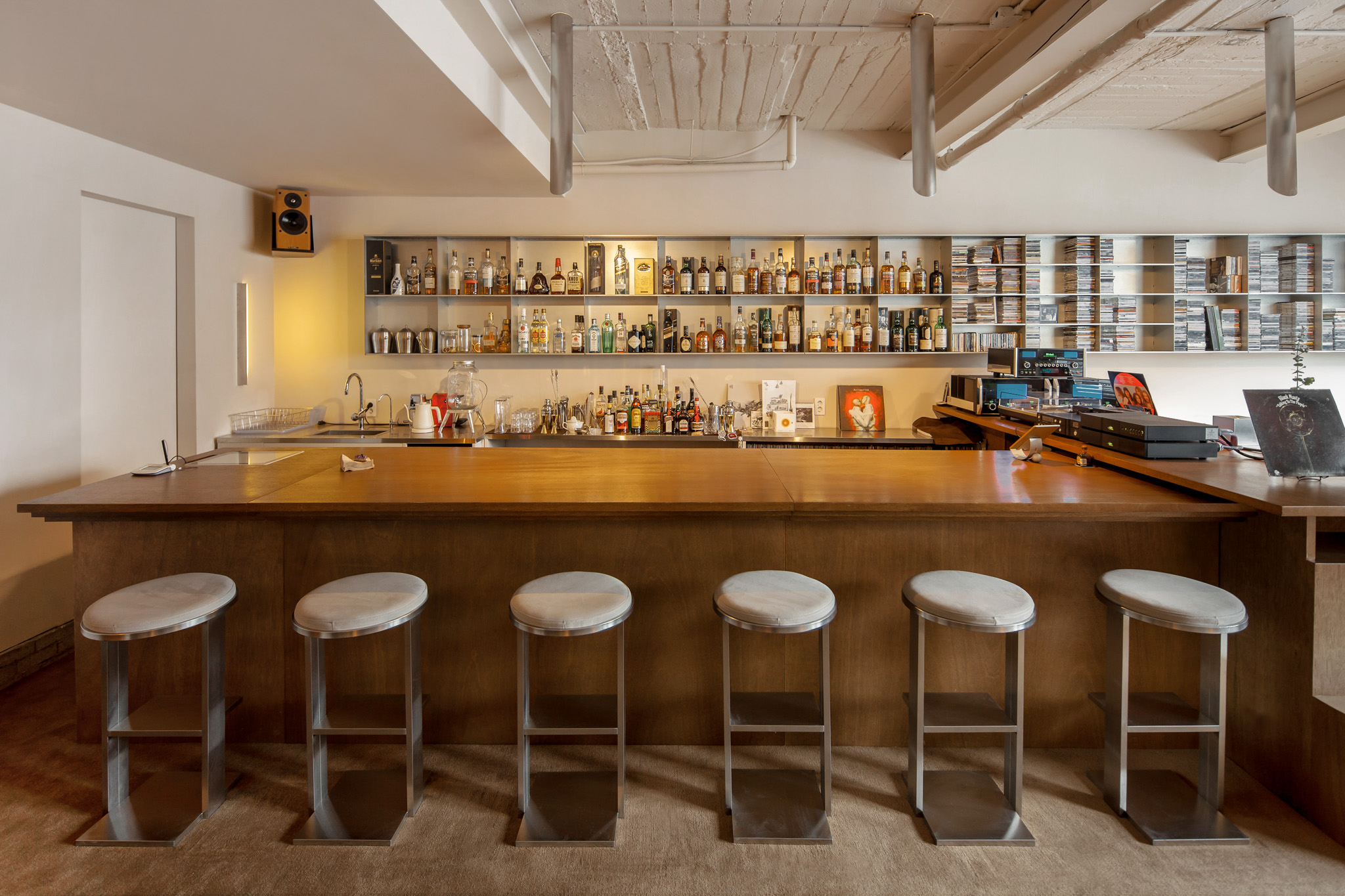 홍대에 위치한 위스키 바로 오랫동안 인디 음악 레이블을 운영했던 클라이언트가 의뢰한 공간입니다. ‘스톤에이지’라는 이름에서 영향을 받은 것인지, 아니면 2층이지만 고저차가 높은 입구에서 전체 공간을 내려다보며 진입해야만 하는 공간의 특성 때문이었는지, 처음 방문했을 때 무겁고 수평적인 가구들이 바닥에 차분히 펼쳐진 풍경이 상상됐습니다. 음악이 중요한 비중을 차지하는 공간인 만큼 단순히 긴 바로 이뤄진 공간보다는, 누군가의 겨울 별장이나 응접실에 앉아 음악을 감상하는 기분이 드는 공간을 만들고 싶었습니다. 소재에서도 라왕 합판의 소박하고 자연스러운 느낌은 가져오면서 면재 특유의 가벼운 느낌을 지우기 위해 손이 많이 가더라도 합판의 모든 단면을 45도 커팅하여 접합해 가구를 제작했고, 대조적으로 음료 선반은 거친 금속으로 투박하게 제작해 벽에 걸어뒀습니다. 술을 판매하는 공간임에도 바닥은 두터운 카펫으로 마감했습니다. 발걸음에서 느껴지는 소음을 줄이고 청각에 집중할 수 있도록.