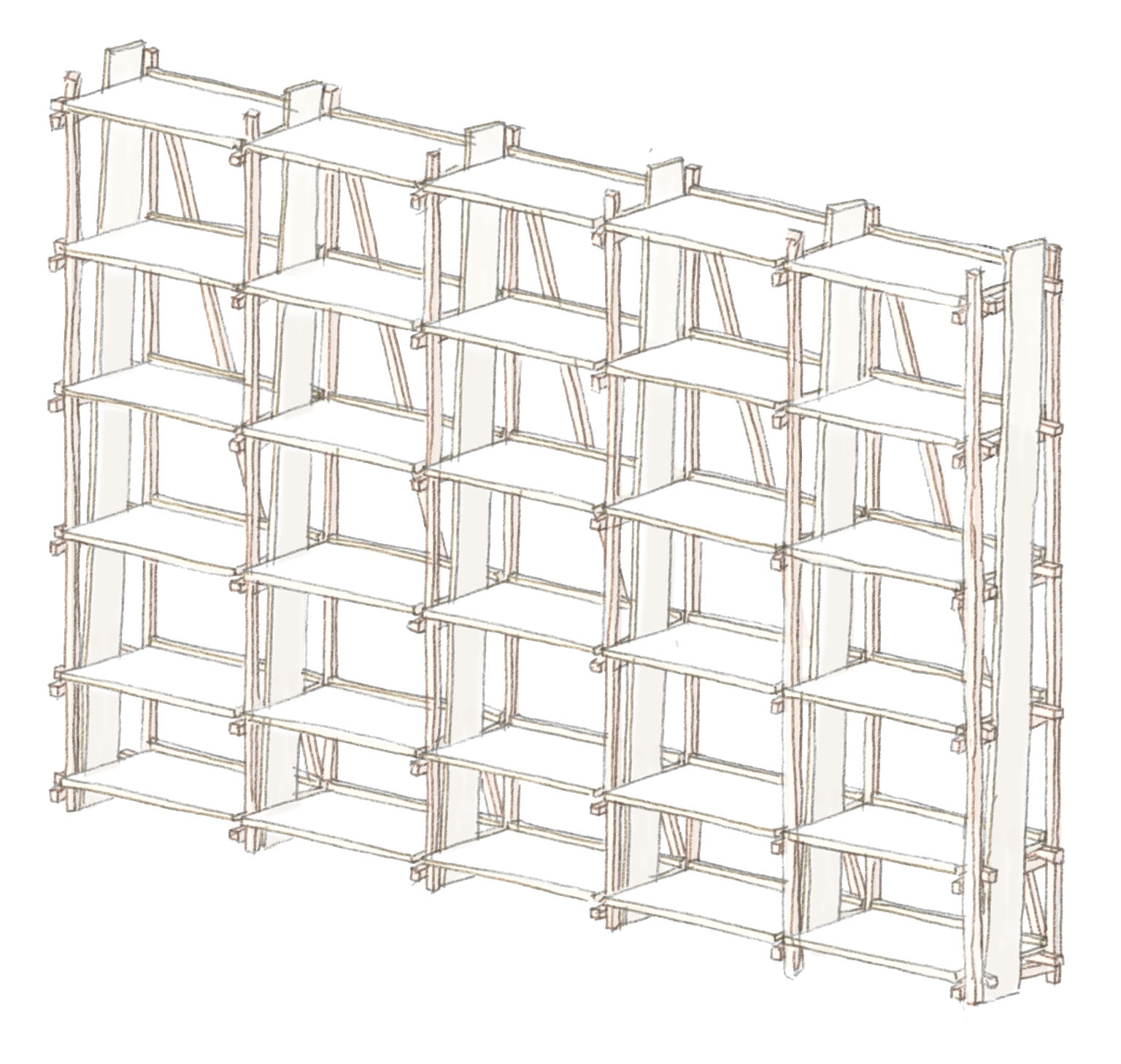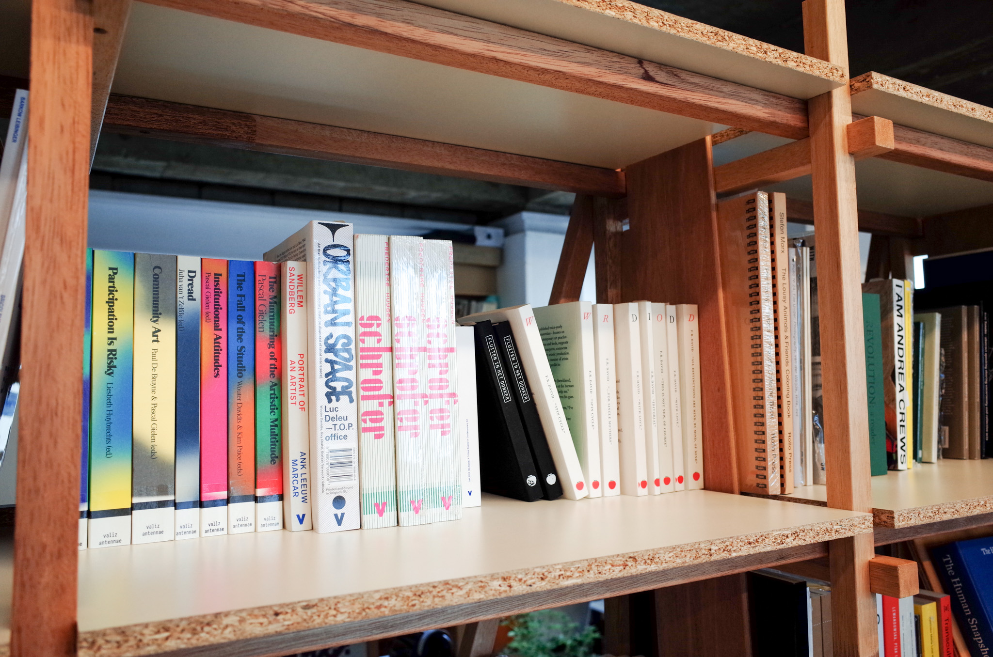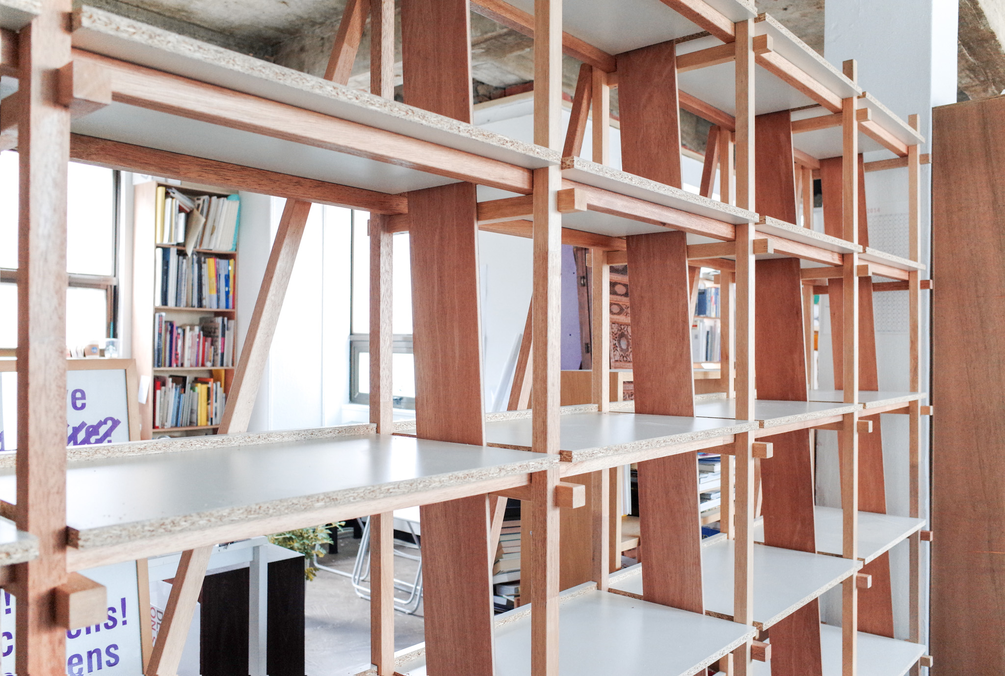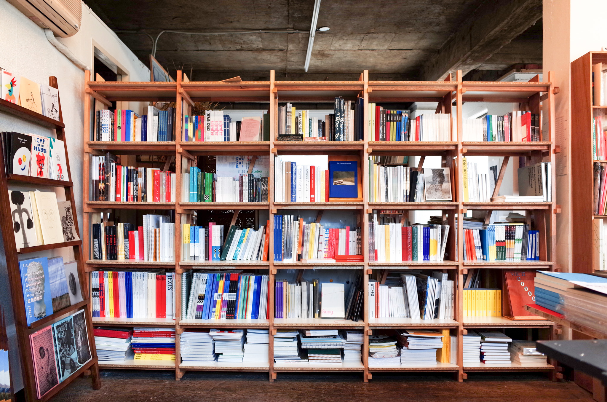 통의동의 예술 서점 더북소사이어티 행사에 참석했다가 서점 대표 임경용에게 현장에서 주문을 받은 책장. 첫 커미션 작업이었고, 당시에는 책장을 어떻게 만들어야 할지 당최 모르겠어서 하나하나 공부하며 설계했습니다. 그러던 중 목수 권구광(쿠목공소 @koo_wwshop)을 만나게 되어 강원도에 있는 그의 집 앞마당에서 책장을 만들었습니다. 이후 클라이언트가 여기저기에 전시·설치 디자이너로 소개해준 덕분에 꽤 재미있는 프로젝트들이 이후로도 이어지게 되었습니다. 간단한 의뢰였지만 좋은 사람들과 인연을 맺고 지금까지 작업할 수 있게 해준 의미 있는 책장입니다.