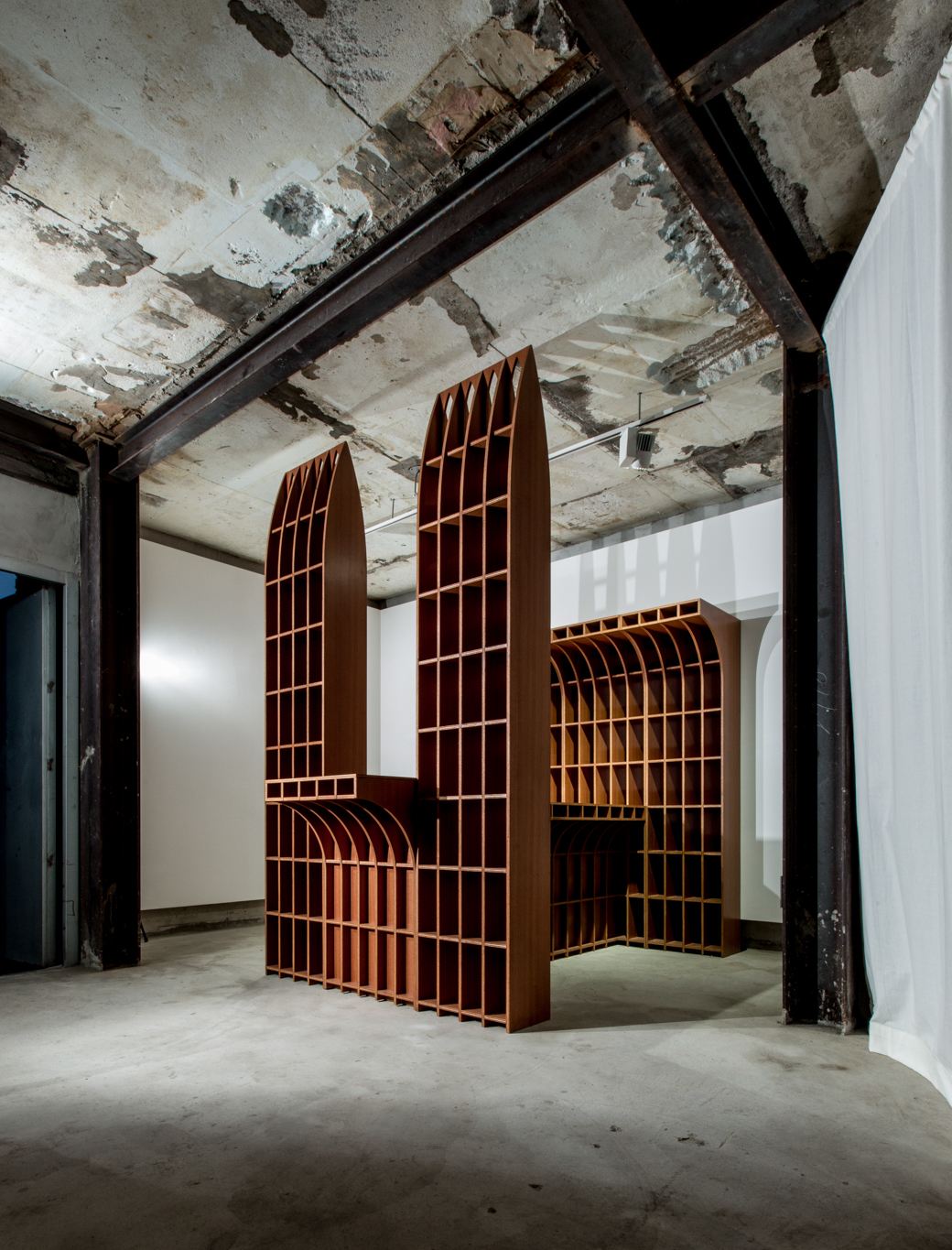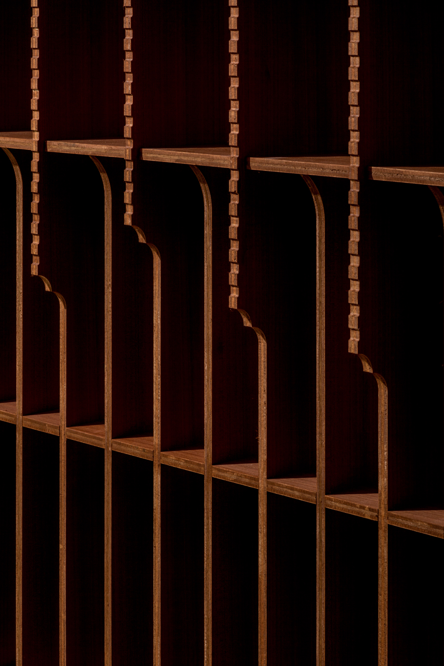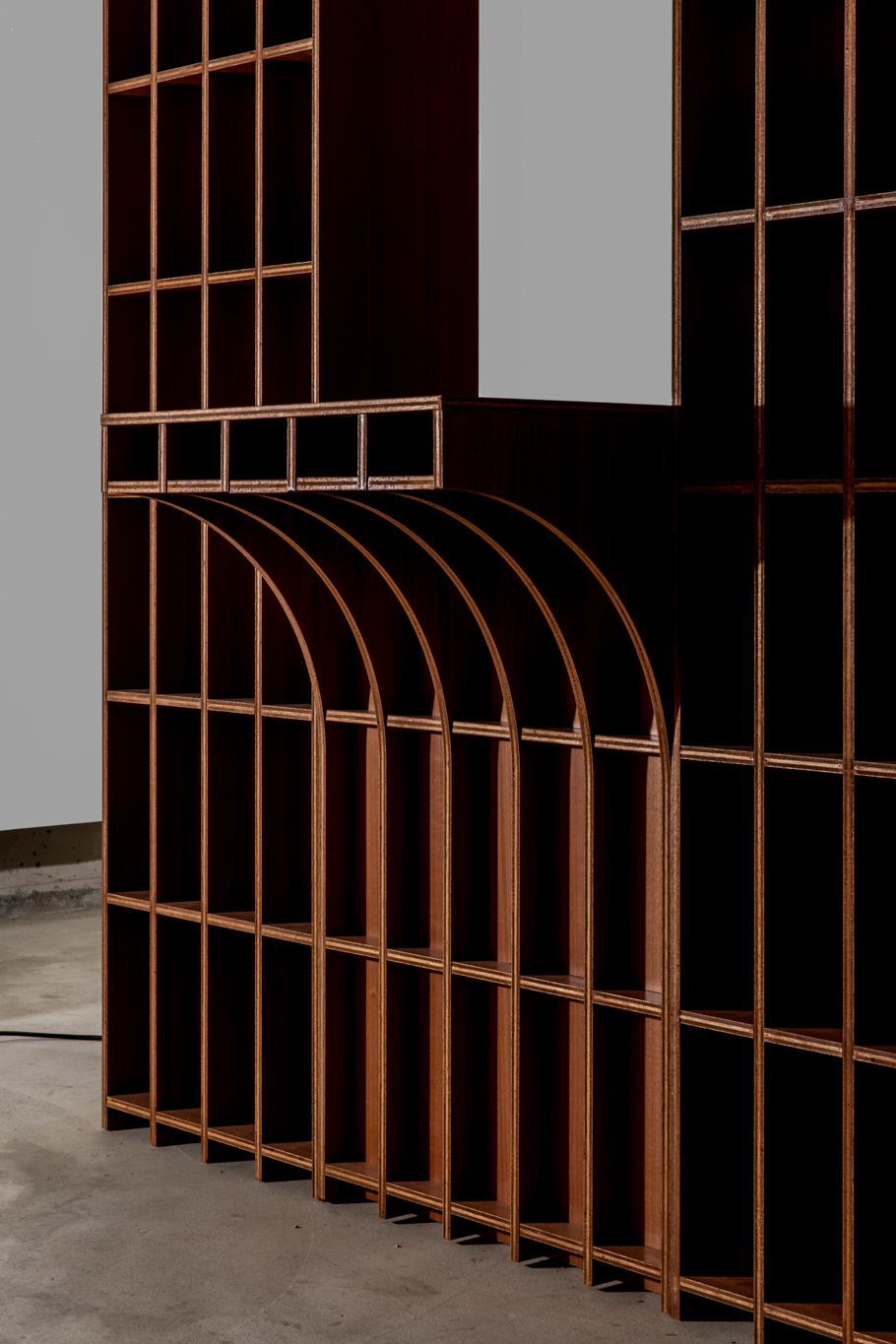 장식용 책장 Ornamental Bookshelves, 체리목 합판, 190x29x140(cm), 2017