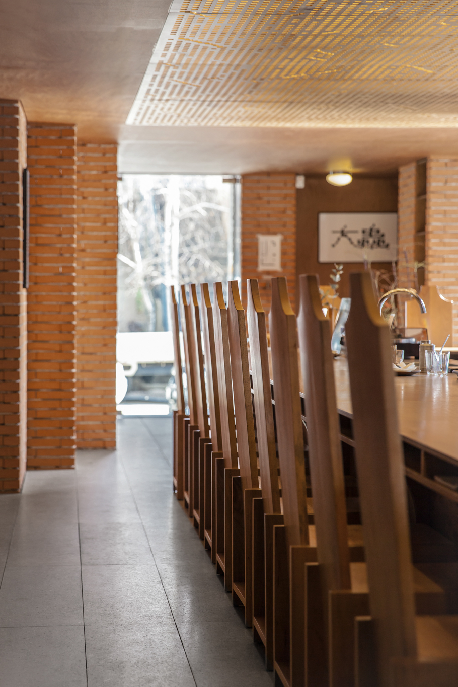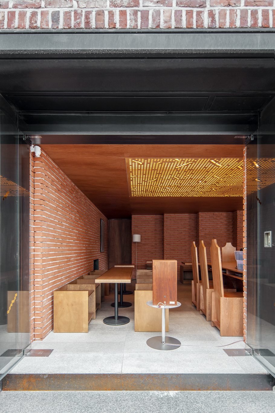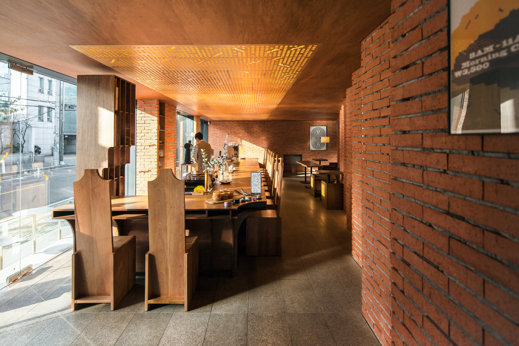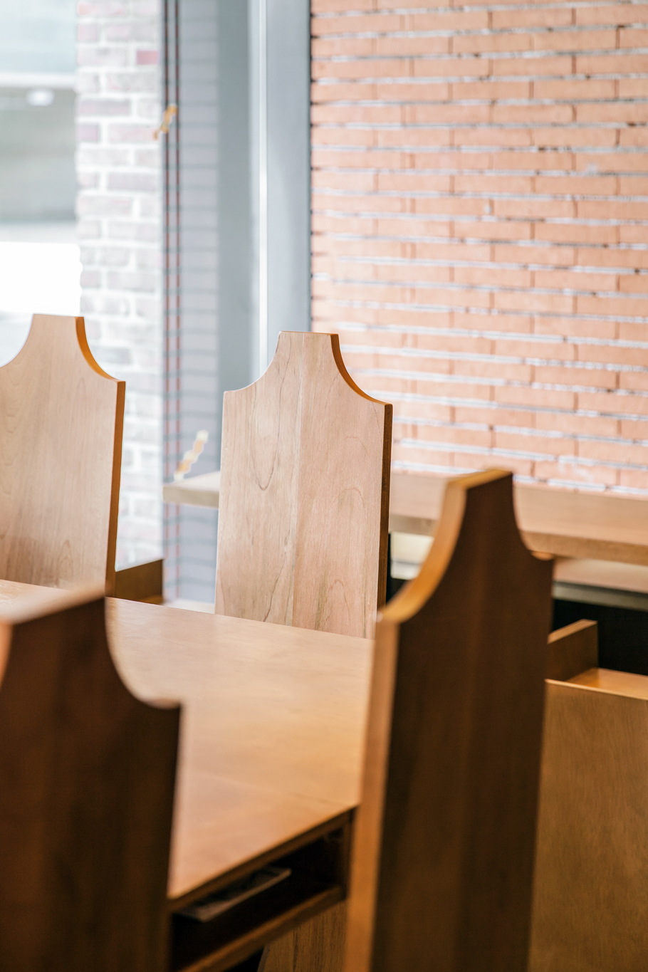 건축사 사무소 푸하하하프렌즈가 자신들이 내부 공간을 맡을 테니 스튜디오 fnt에는 그래픽을, 우리에게는 가구를 만들어달라는 요청을 보내왔습니다. 미팅 때 만난 클라이언트는 말이 거의 없을 정도로 과묵했고, 찔러보는 마음으로 몇 차례 들고 간 안들은 사실 우리 맘에도 안 들고, 푸하하하프렌즈(굉장히 솔직한 성격)도 ‘이건 왠지 아닌데 뭐가 아닌지 모르겠고…’ 하는 것이었습니다. fnt가 그래픽 작업을 먼저 진행했기 때문에 거기서 디자인에 대한 힌트를 얻고 싶었지만, fnt 역시 가구 디자인이 먼저 나오길 기다리고 있었습니다. 절박한 마음이 되어 뭐라도 쓸 게 없을까 생각하던 중 클라이언트가 미팅 때마다 쓰고 나오던 페도라가 떠올랐습니다. 페도라 하면 서부극에 자주 등장하던 길다란 바도 생각나고, 모자를 벗을 때 손자국이 남긴 곡선도 독특해 그런 형태를 기초로 디자인했습니다. 곡선이 들어간 가구와 푸하하하가 설계한 계단형 벽면을 토대로 fnt에서 천장에 들어갈 조명과 그래픽을 작업했고, 결국 이 모든 것이 한자리에 모인 날, 왠지 대충 한 게 없는 대충유원지가 완성됐습니다.
