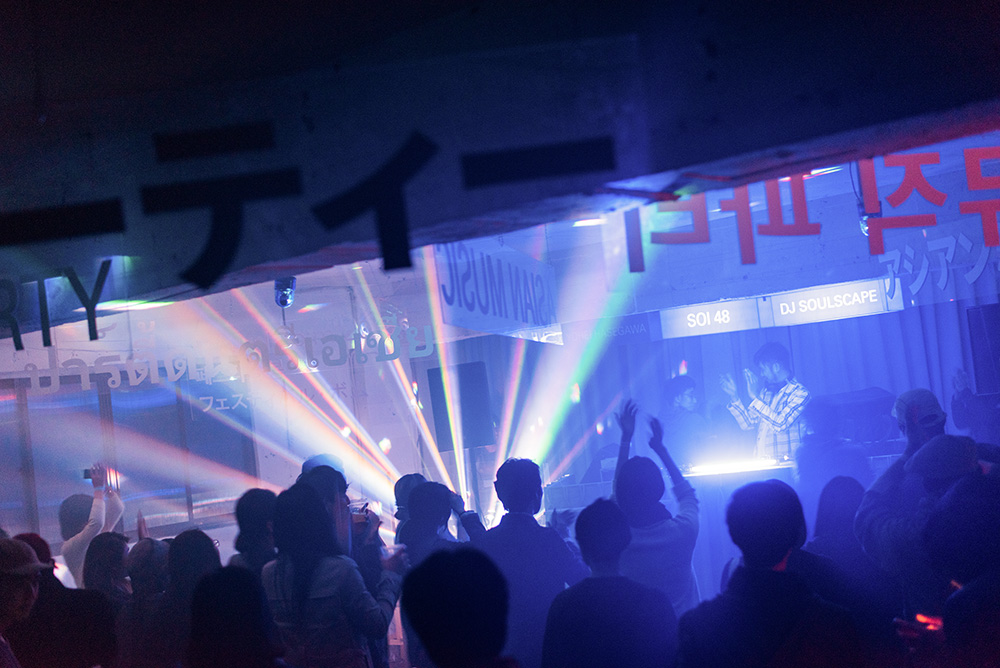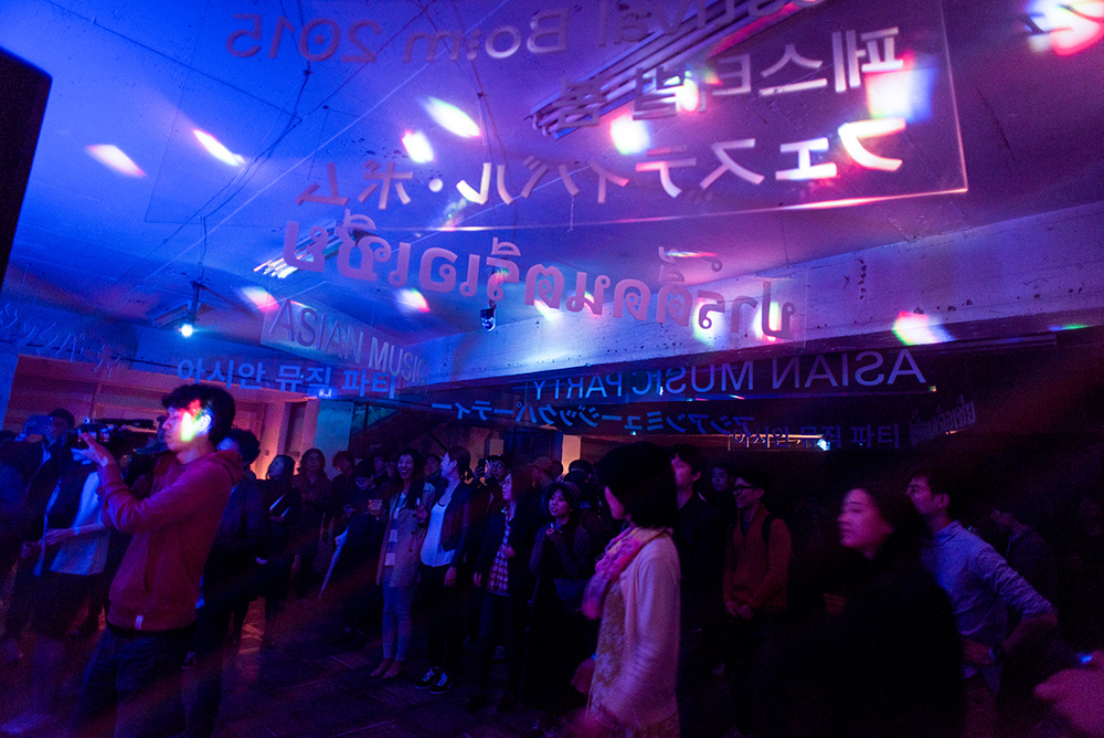 박다함의 기획으로 다양한 국적의 아시아 DJ들이 등장해 로컬 음악을 들려주는 파티. ‘아시안 뮤직 파티’를 여러 국가의 언어로 쓰고 천장에 둥실둥실 띄워 놓았습니다.
