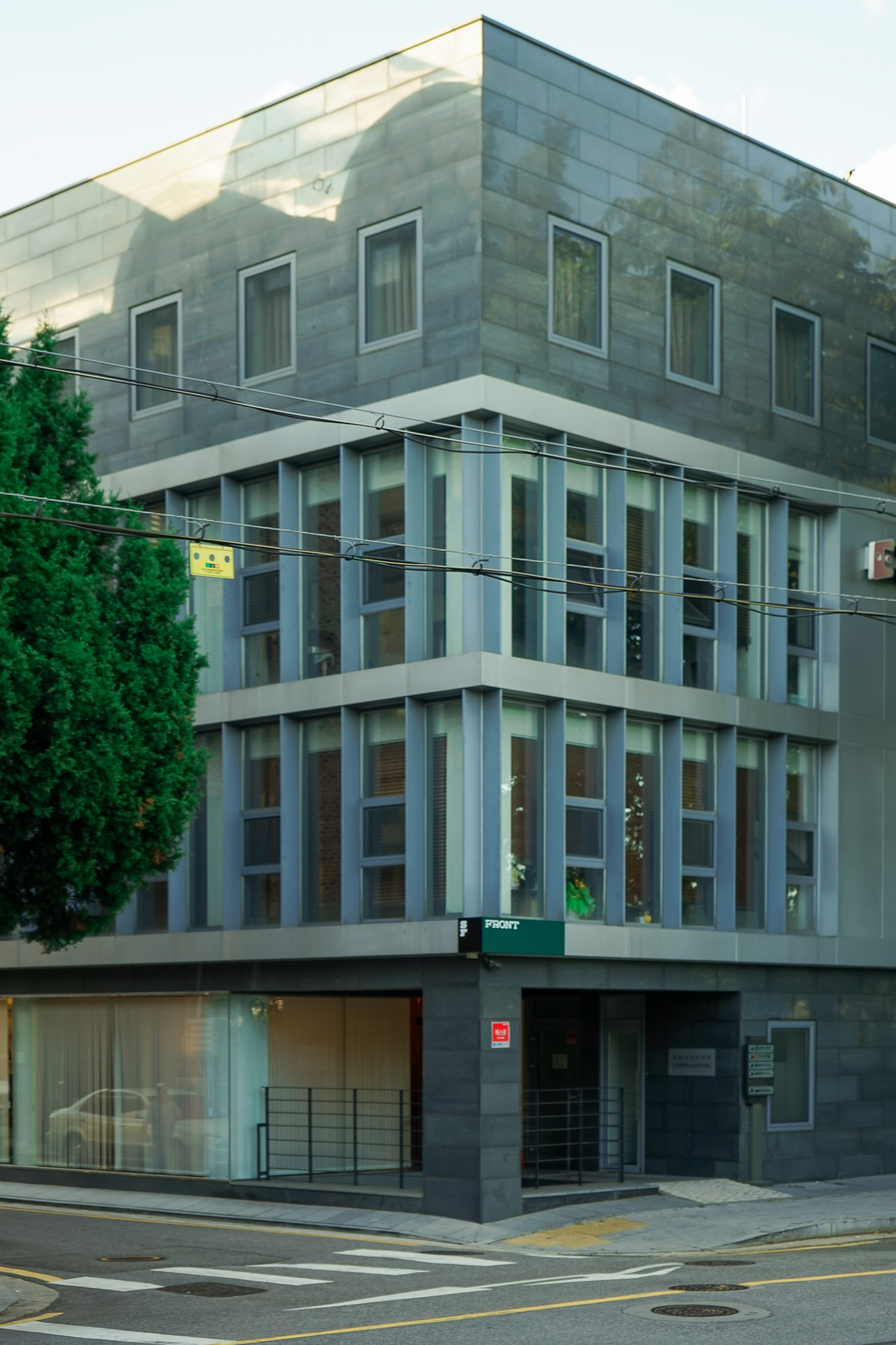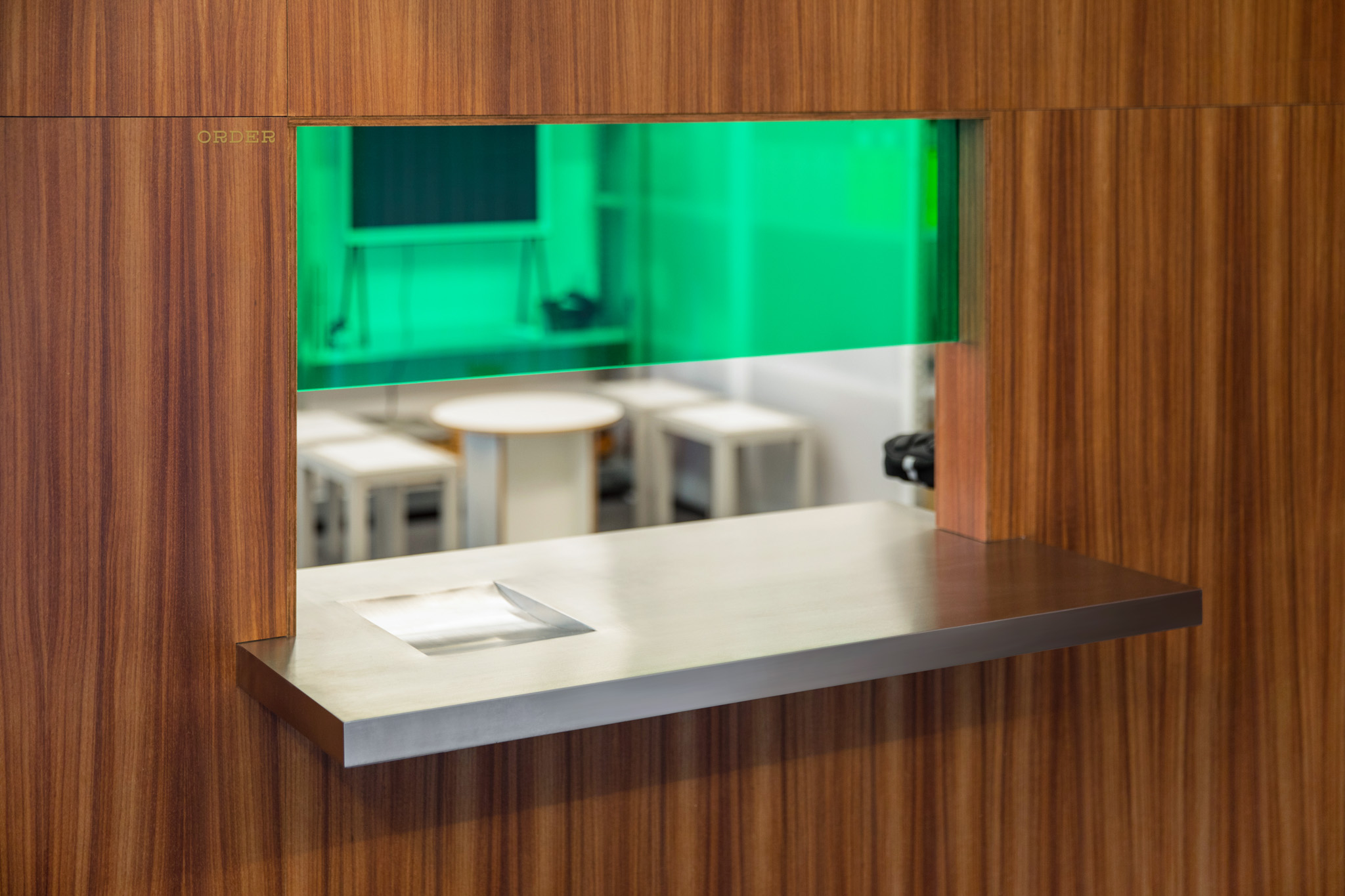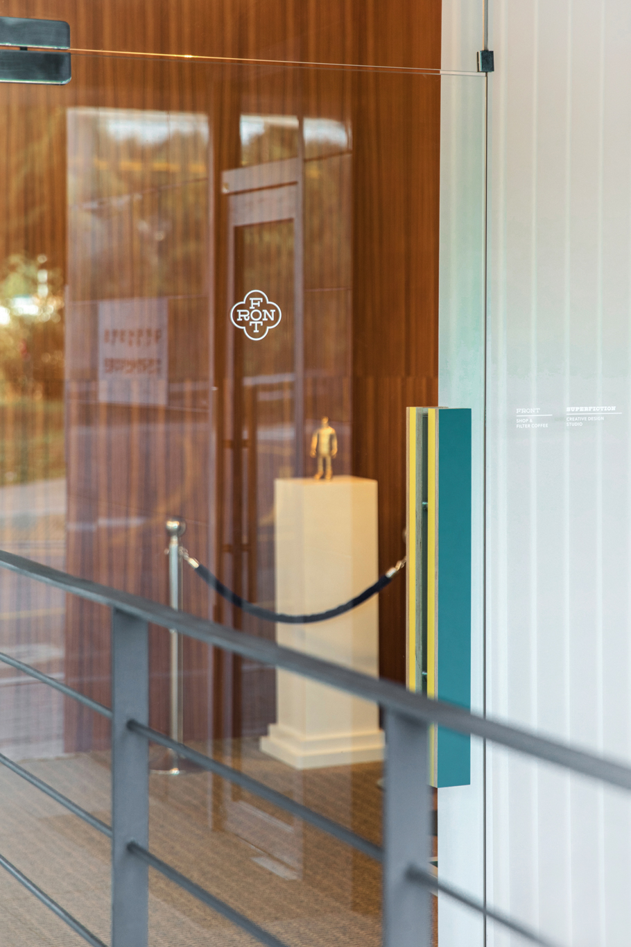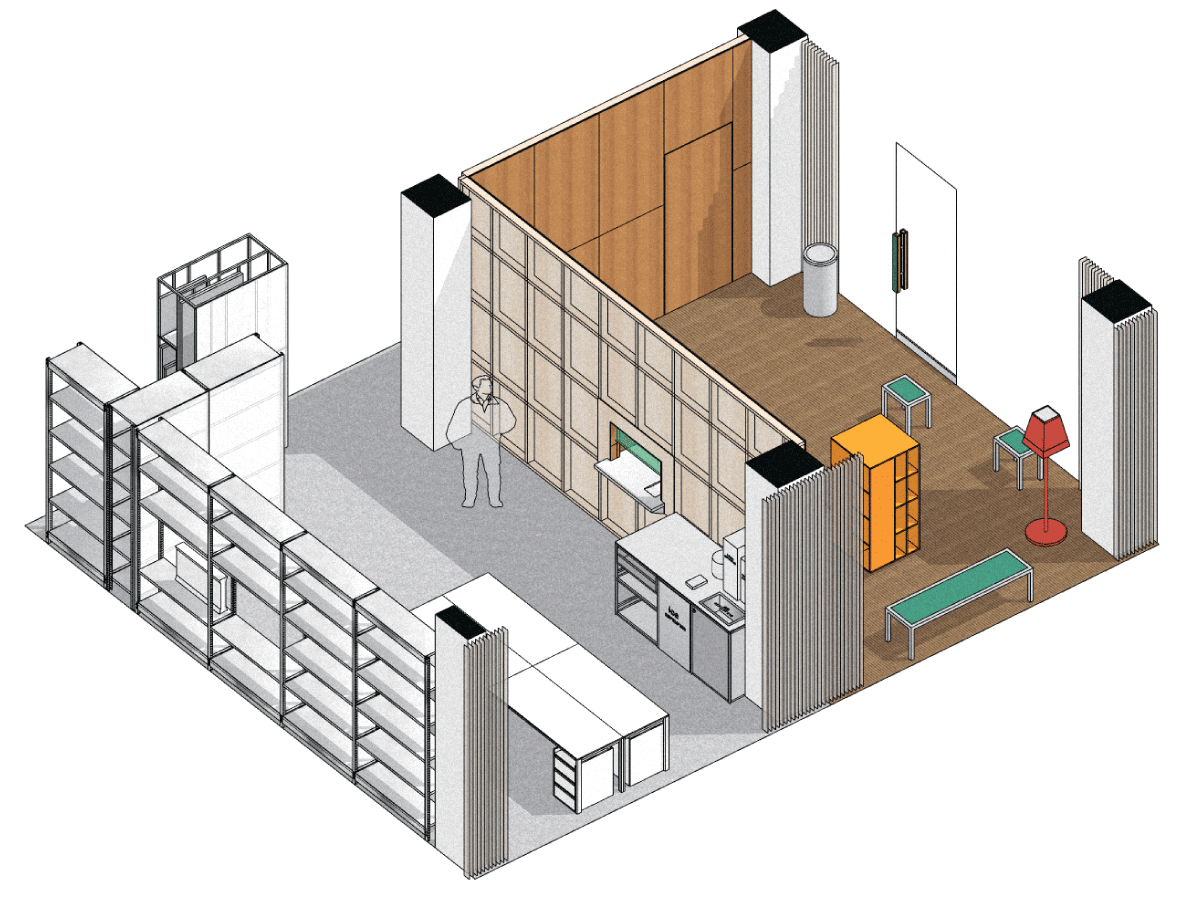 사무실과 카페, 두 가지 용도로 동시에 사용하기엔 작은 공간이 주어졌습니다. 두 영역 사이에 가벽을 세우고, 카페에 방문한 손님에게 오피스에서 제조한 음료를 전달하는 일종의 개찰구를 만들었습니다. 건물 측면에서 보면 용도에 따라 반으로 나뉜 공간을 확인할 수 있는 점이 흥미롭습니다. 세트장 같기도 하고요.