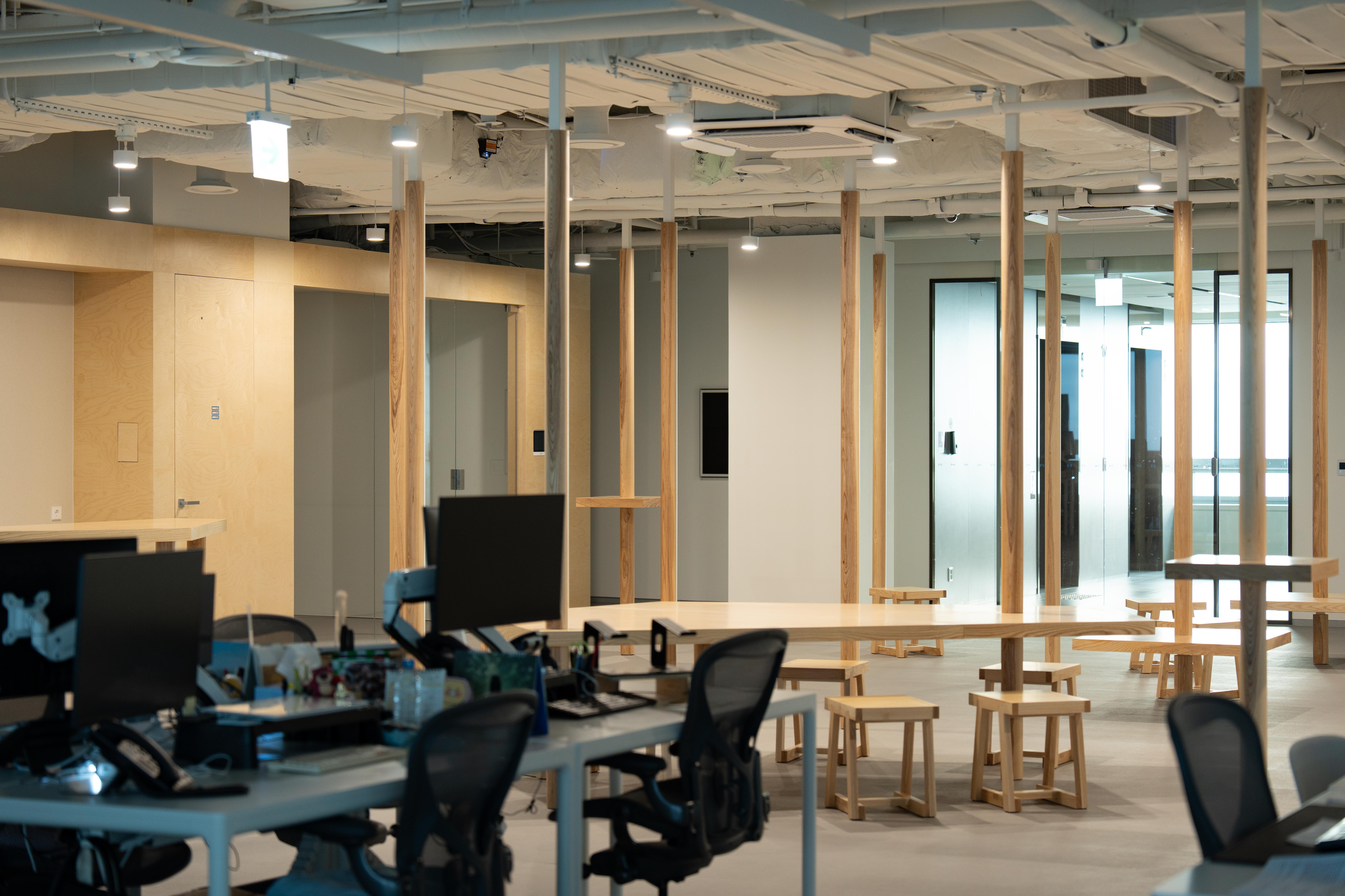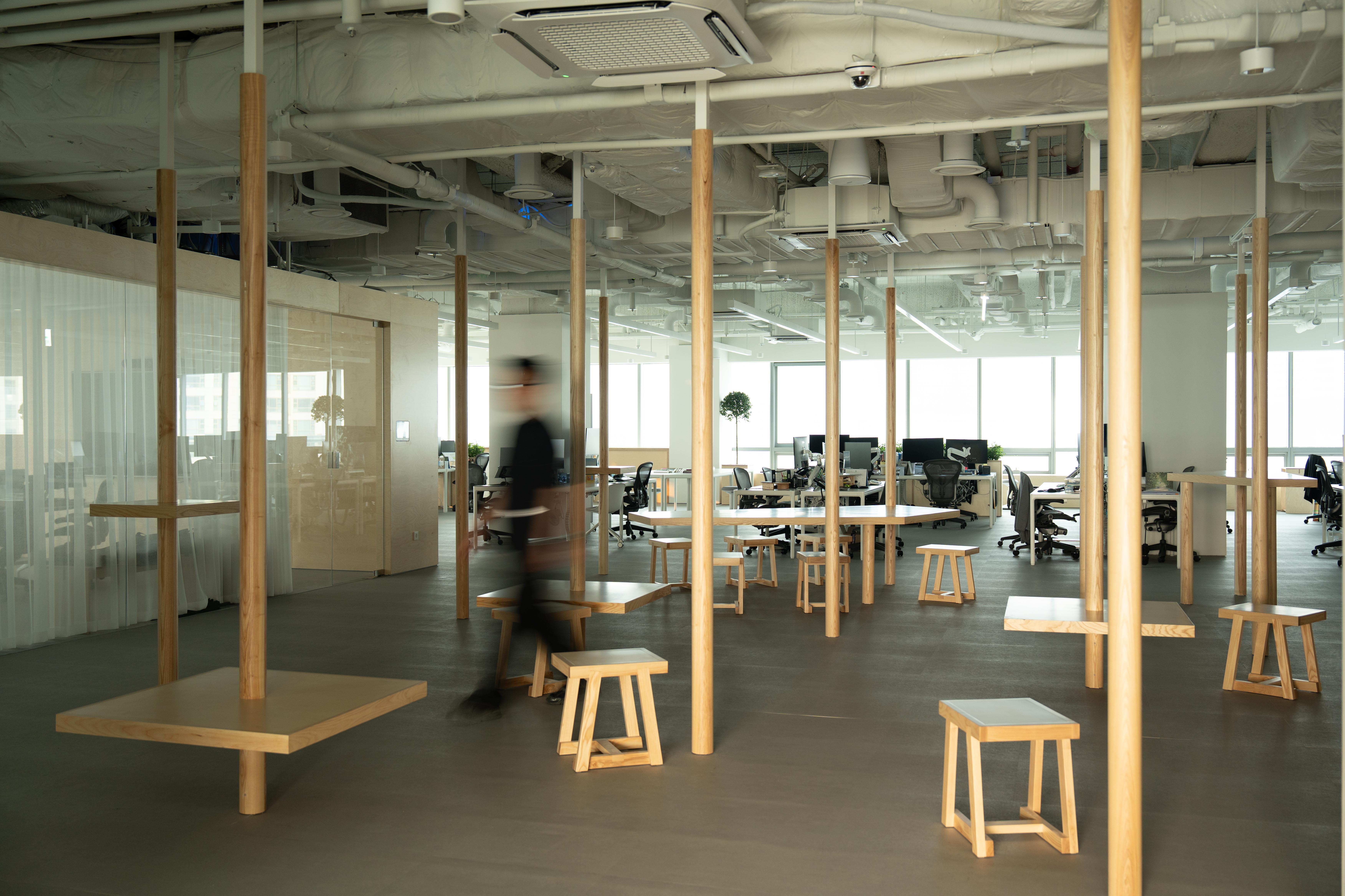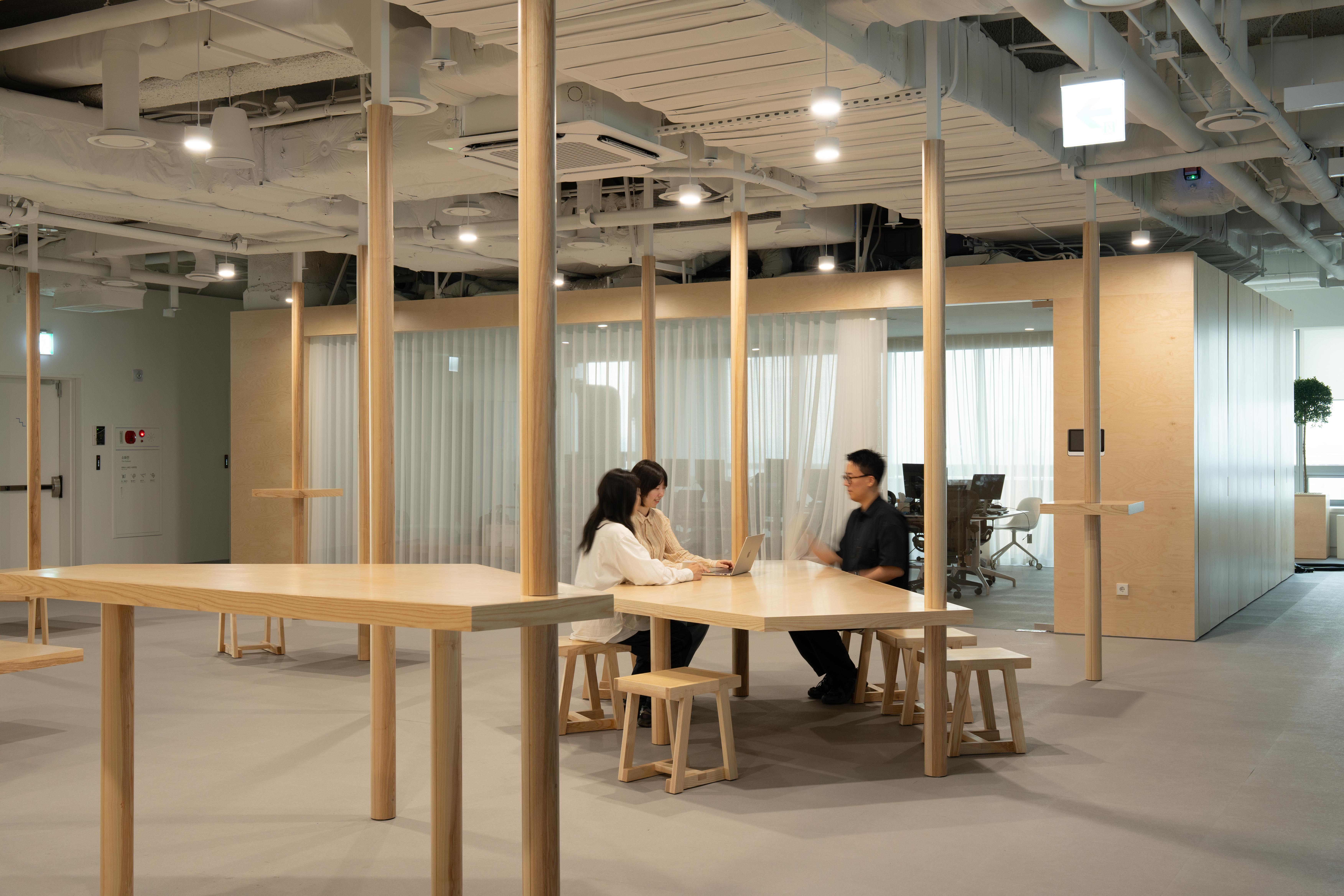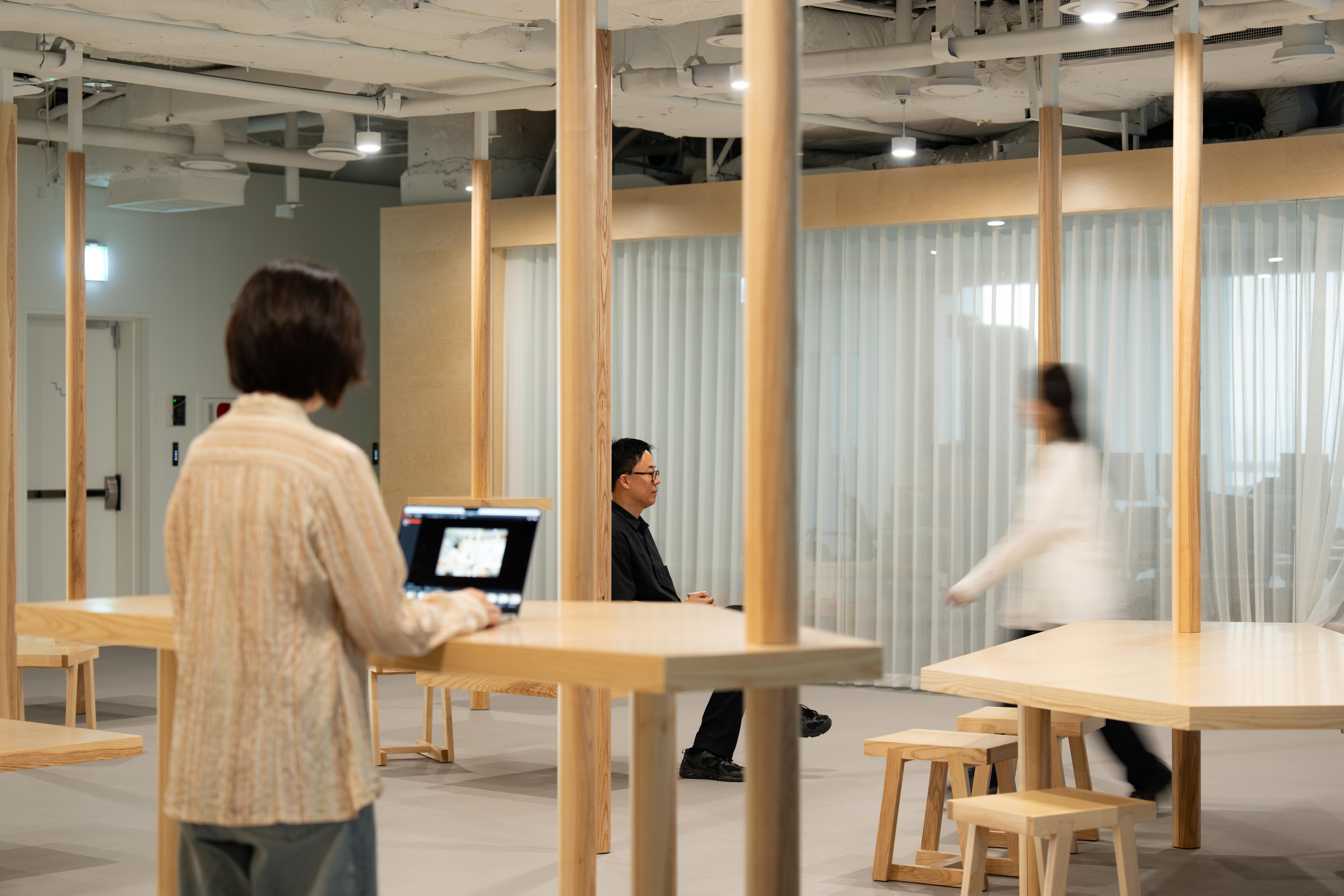 COM designs spaces and furniture with various characteristics, from commercial spaces for unspecified individuals to offices where different members work together.