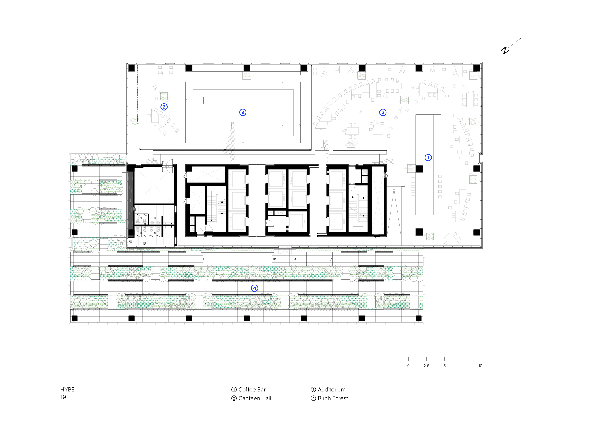 하이브(HYBE)는 기업 특성상 다양한 성격의 프로그램이 동시다발적으로 진행됩니다. 일반적인 오피스의 고정된 레이아웃으로는 이러한 특색을 수용하기 어려울 것으로 판단하여, 끊임없이 움직이며 변화하는 시스템을 제안해 필요에 따라 크기를 조절할 수 있는 공간을 설계했습니다.