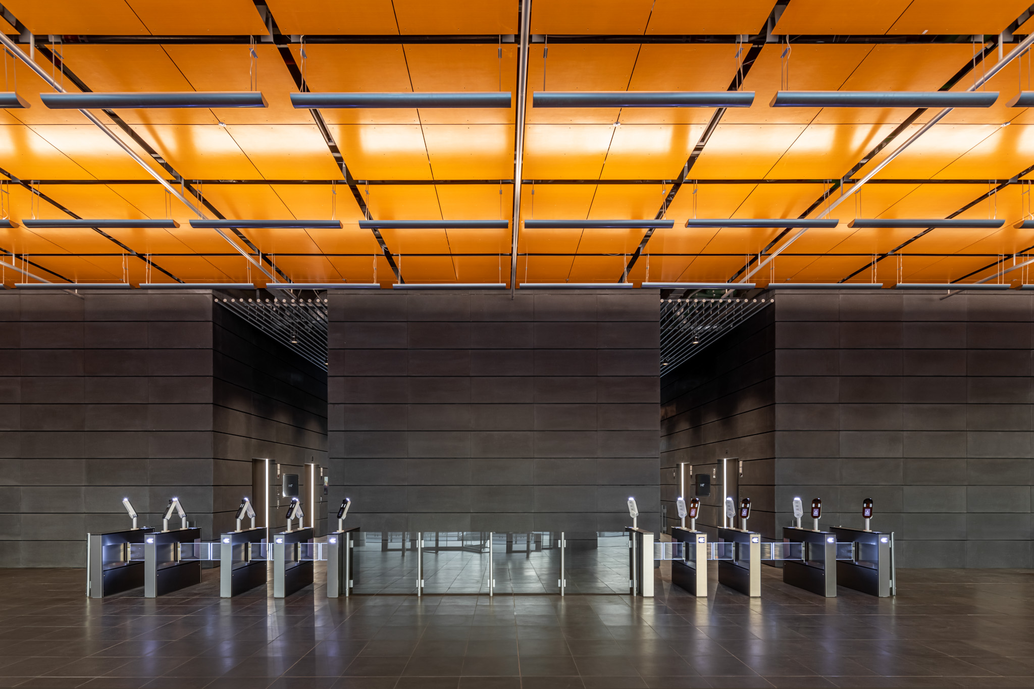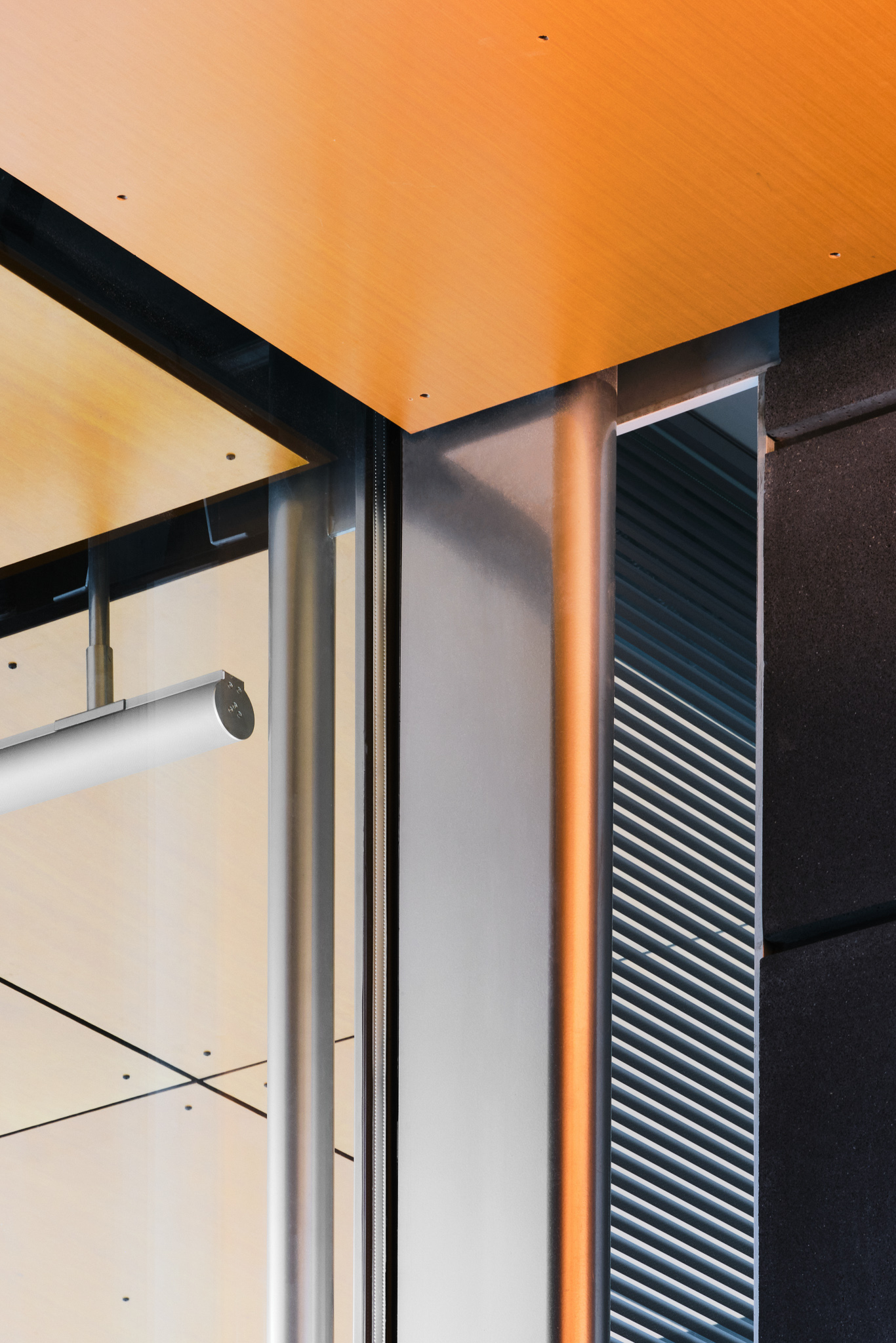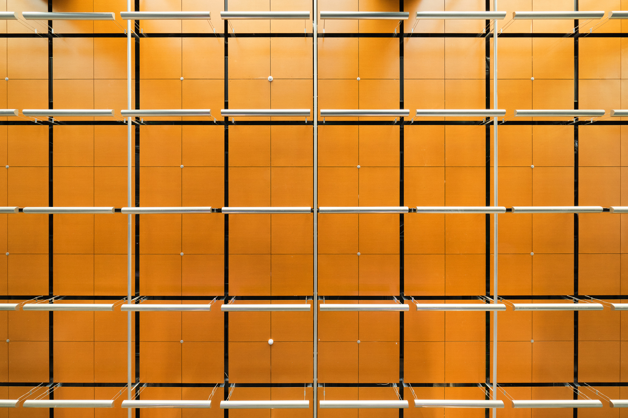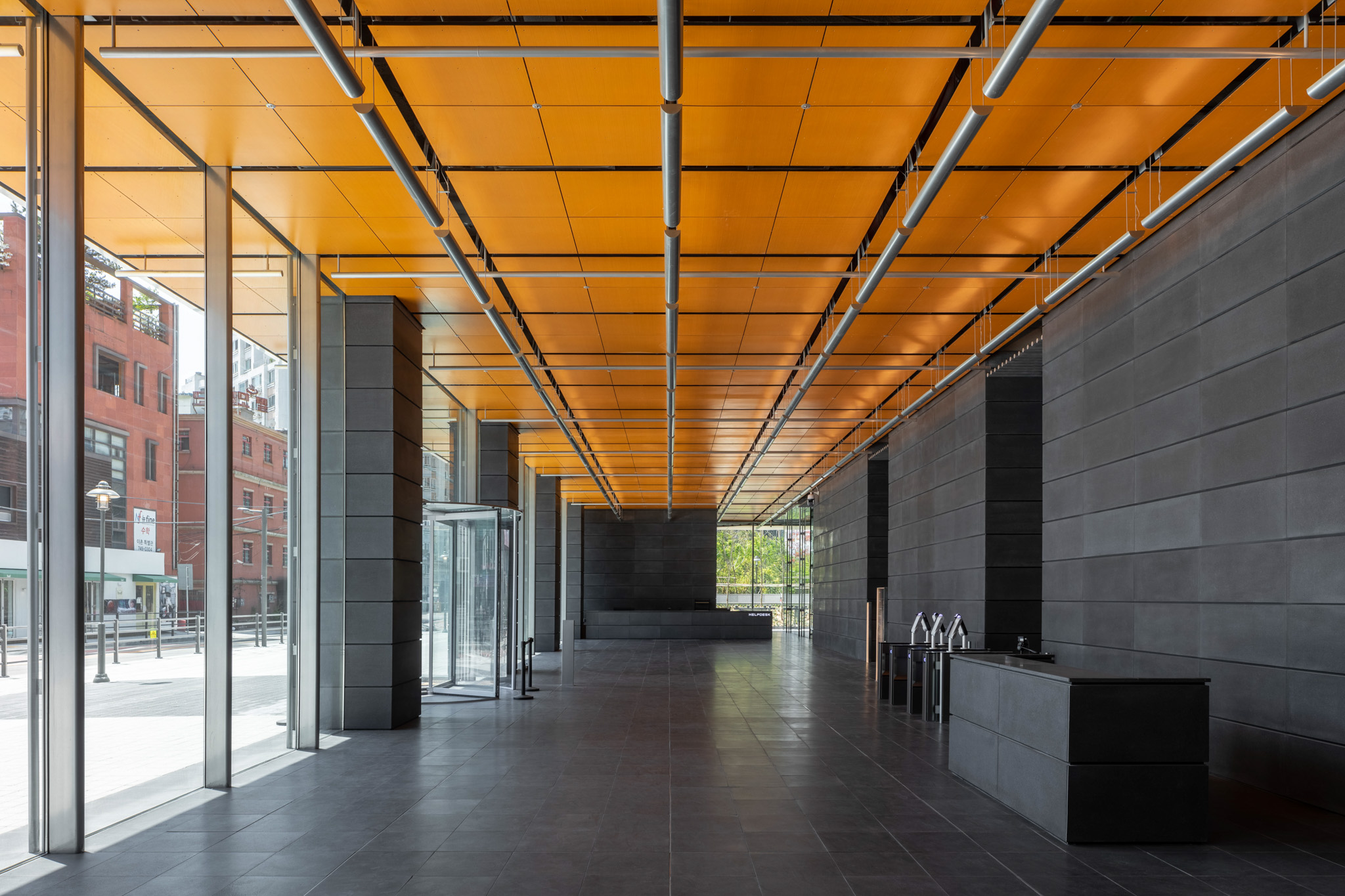 기존 건물이 뜬바닥 구조였고, 대부분의 설비가 하부에 몰려 있었던 탓에 자연스럽게 천장에 집중했습니다. 오피스에 필요한 기본적인 인프라들을 천장에서부터 끌고 내려오는 방식을 적용해 자유로운 평면이 가능하도록 했습니다. 고정된 파티션 대신 가변적인 모빌랙이 들어선 오피스 공간은 그리드 시스템 위에서 미리 계획된 시나리오를 바탕으로 구역화됩니다. 천장에 설치된 구조물에 문과 벽을 달아 간이 회의실을 갖출 수도 있습니다. 그리드 체계를 따른 각각의 블록에 위요감이 생기도록, 용도가 명확한 업무 공간에는 양 측면으로 간접등을 설치한 아치형 천장을 구성했고, 통로 공간에는 이동 소음을 줄여주는 흡음재를 사용해 천장을 구성했습니다. 마감재의 연결 구조, 조명 트레이, 소방 시설 등이 서로 엮이는 하나의 구조체를 만든 셈입니다.