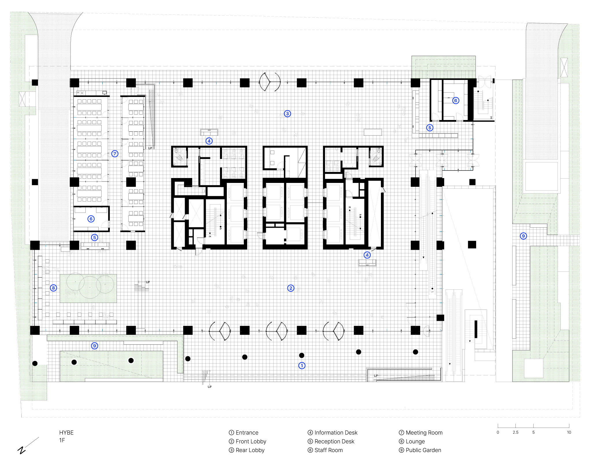 하이브(HYBE)는 기업 특성상 다양한 성격의 프로그램이 동시다발적으로 진행됩니다. 일반적인 오피스의 고정된 레이아웃으로는 이러한 특색을 수용하기 어려울 것으로 판단하여, 끊임없이 움직이며 변화하는 시스템을 제안해 필요에 따라 크기를 조절할 수 있는 공간을 설계했습니다.