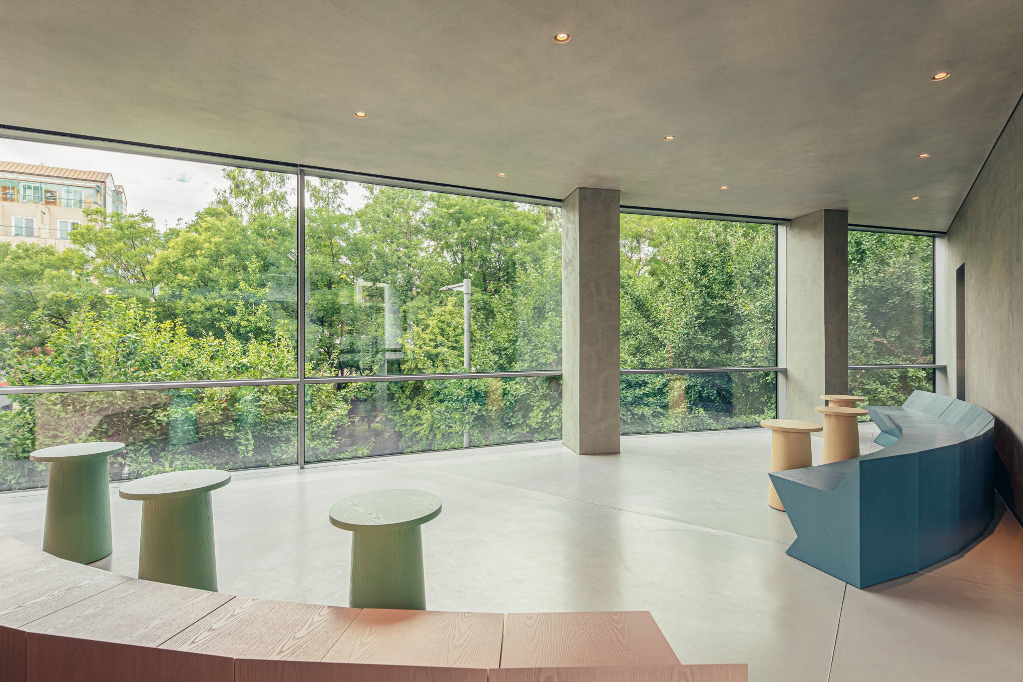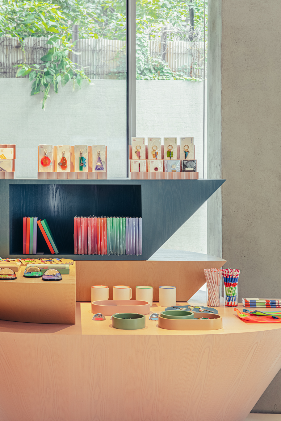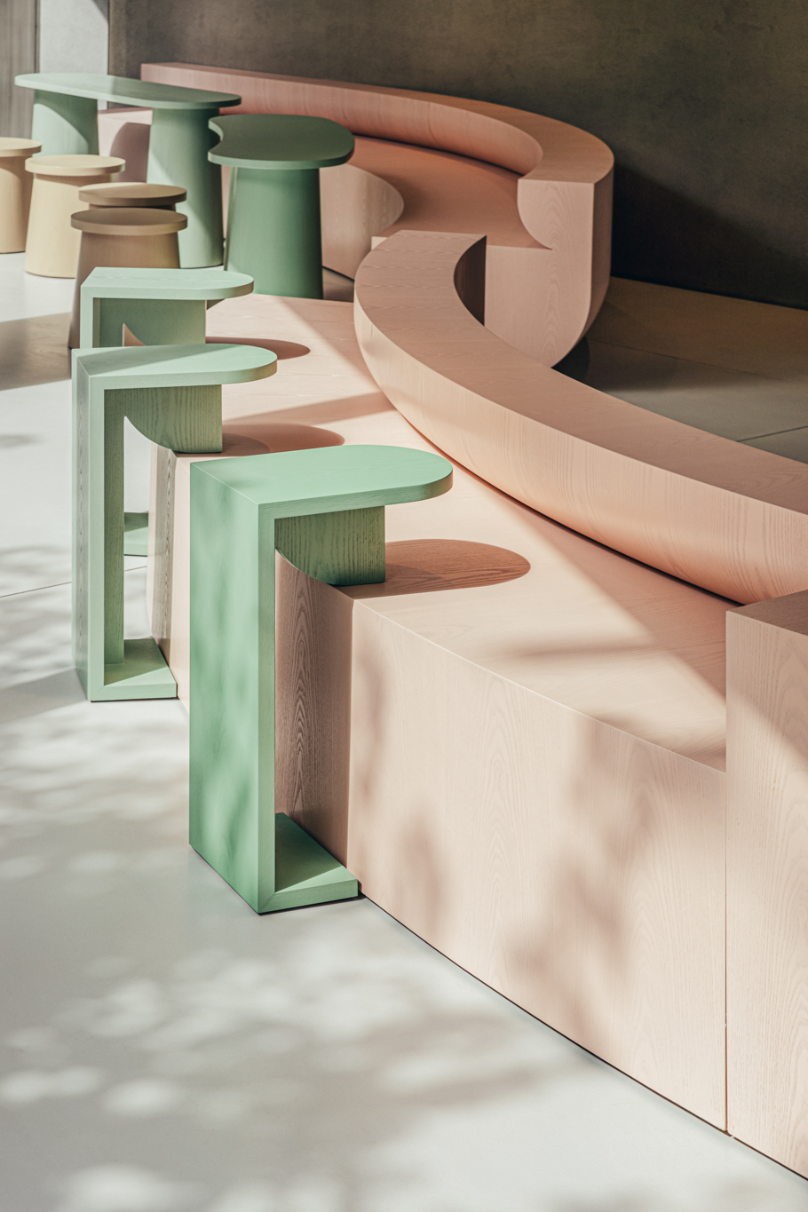 COM designs spaces and furniture with various characteristics, from commercial spaces for unspecified individuals to offices where different members work together.