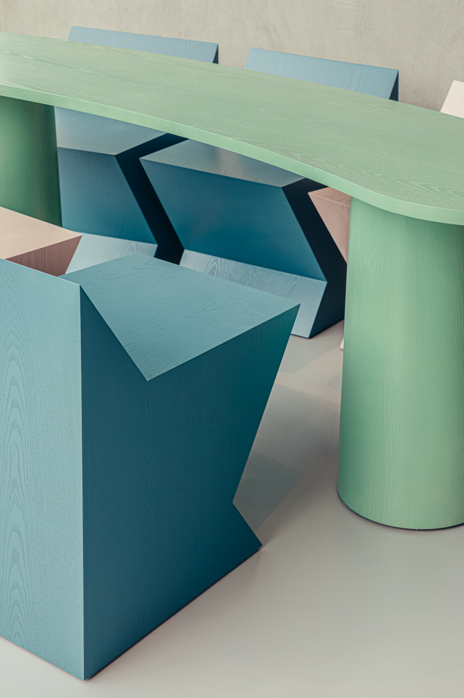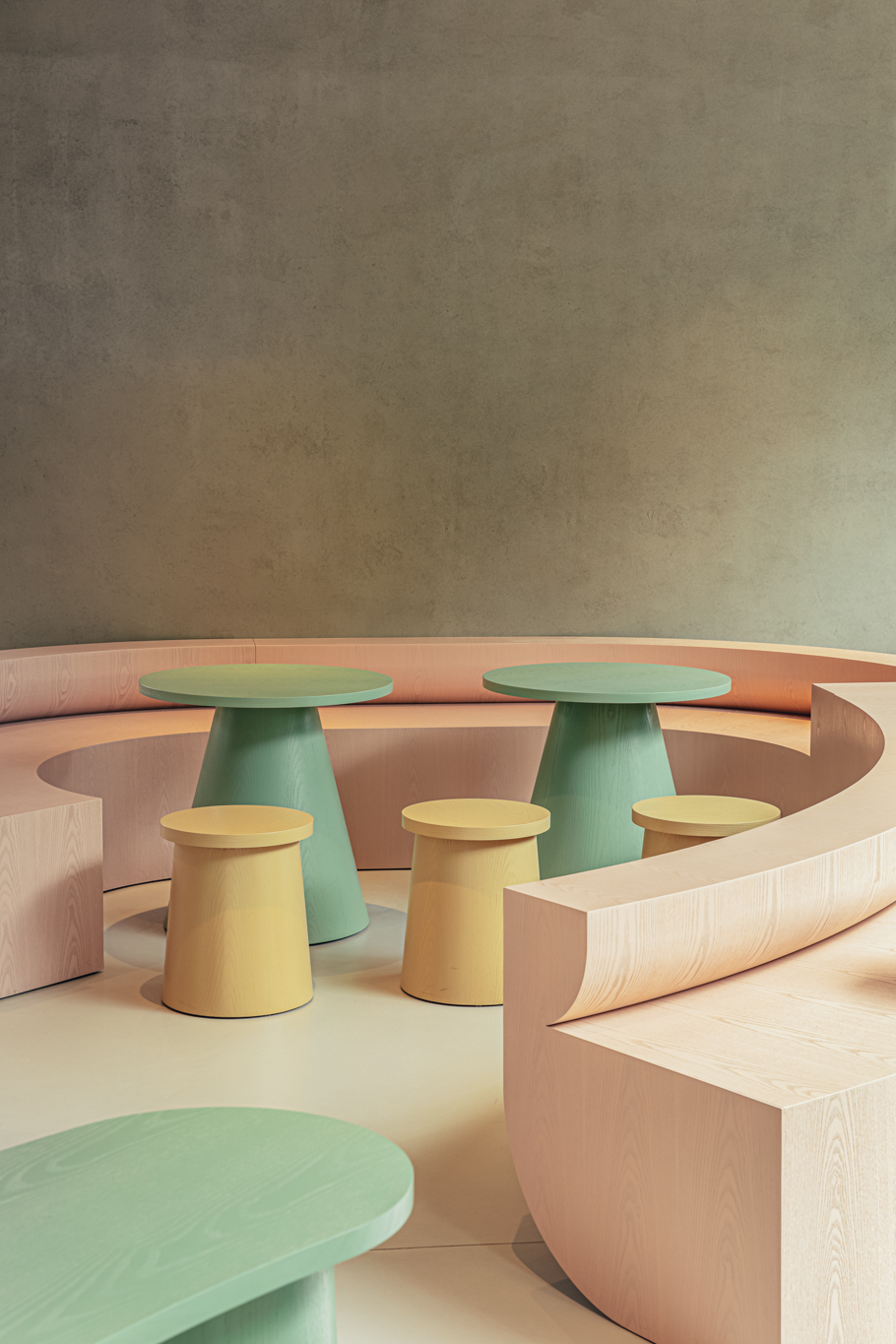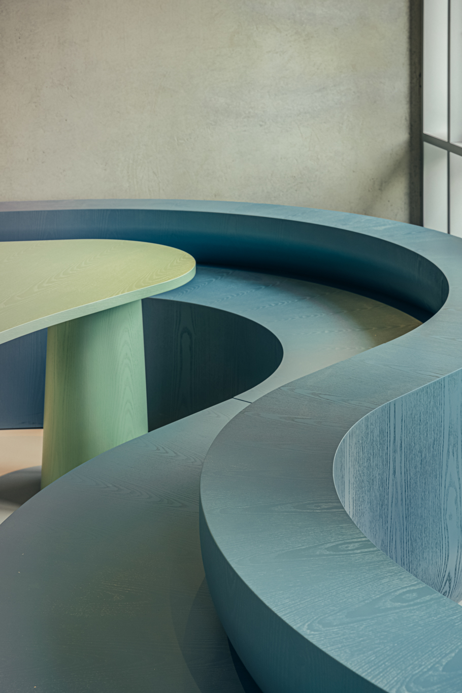 COM designs spaces and furniture with various characteristics, from commercial spaces for unspecified individuals to offices where different members work together.