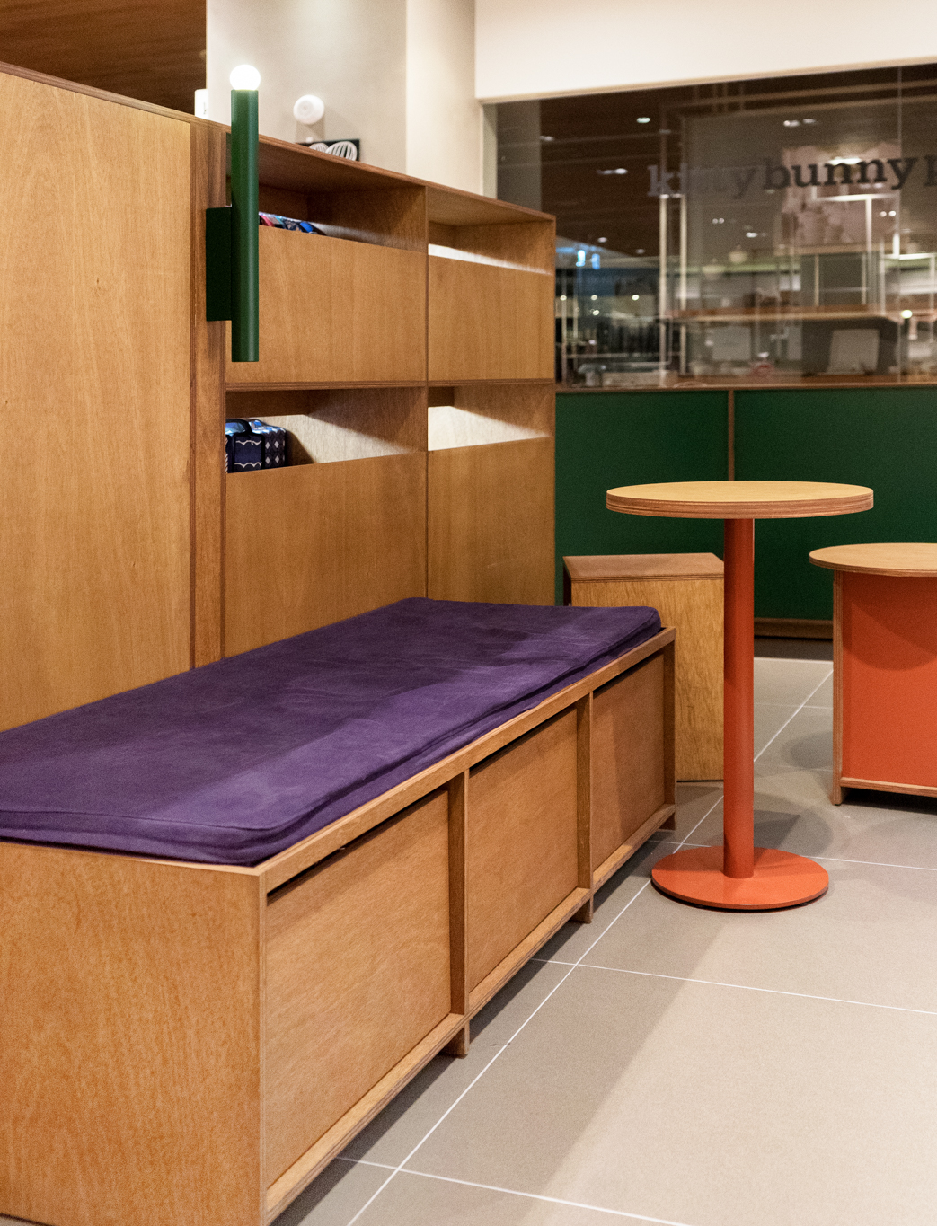 COM designs spaces and furniture with various characteristics, from commercial spaces for unspecified individuals to offices where different members work together.