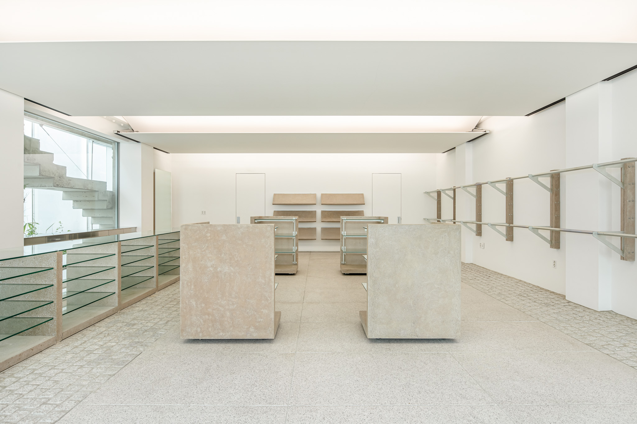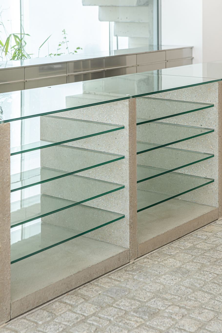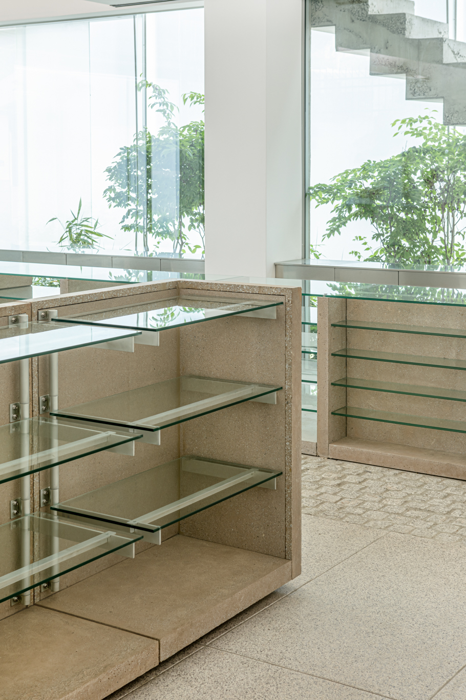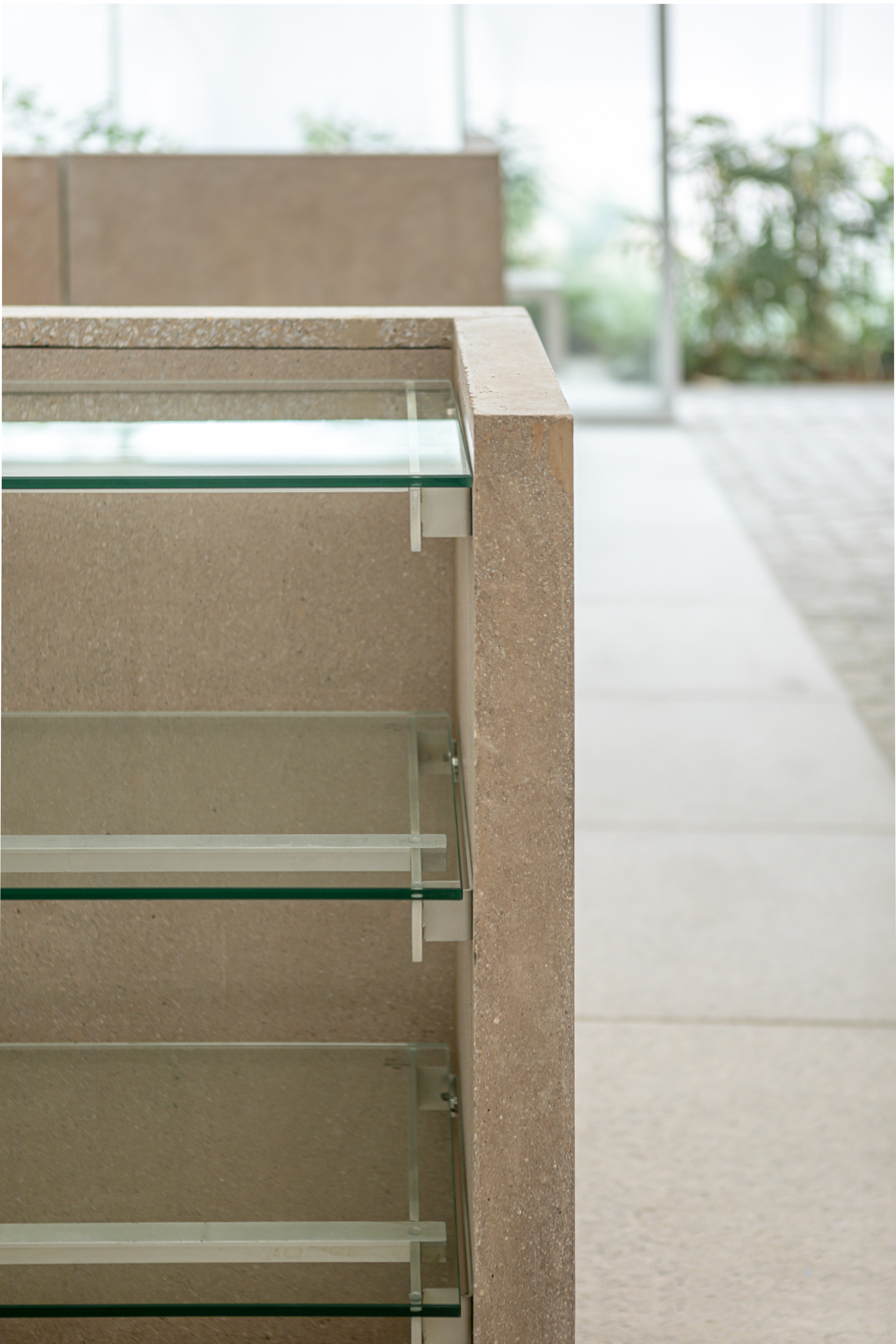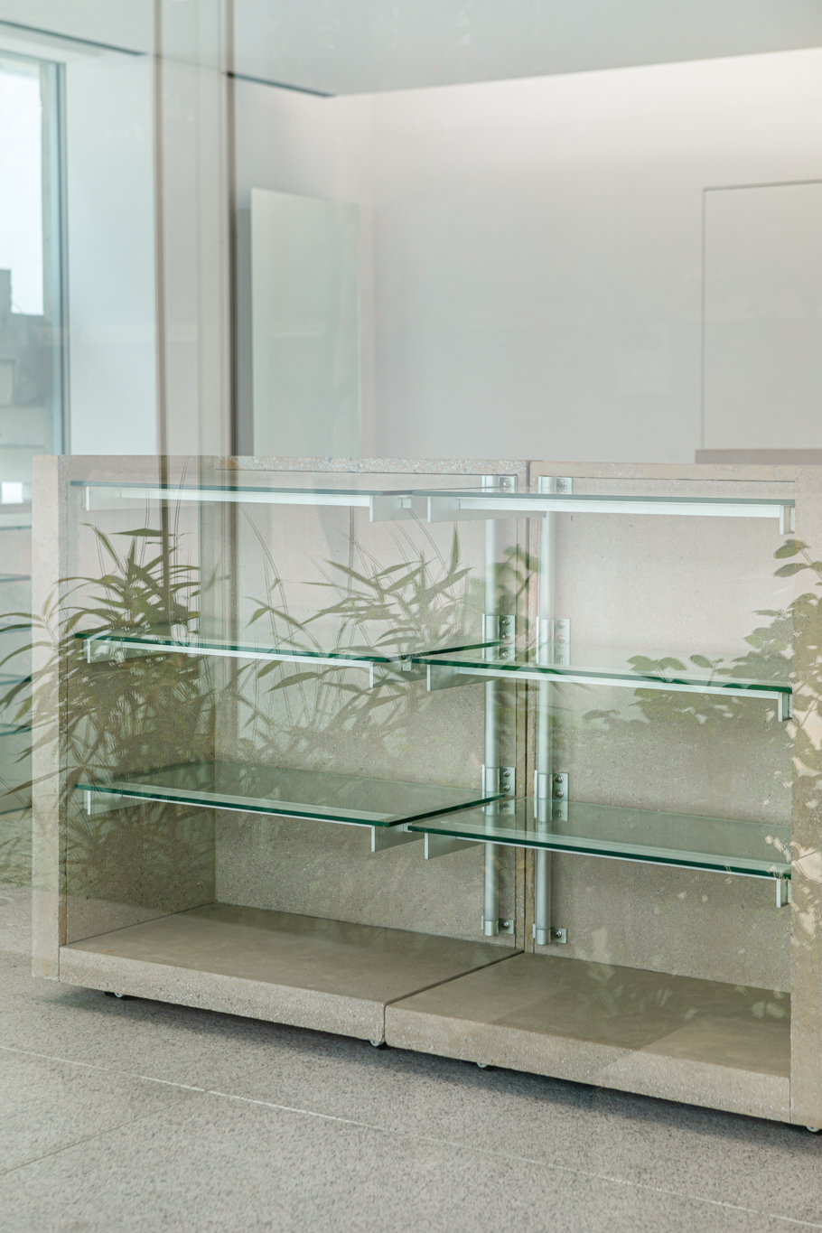 연희동에 위치한 카키스(khakis)의 가구 디자인. 색상의 명칭인 ‘카키(khaki)’에서 가져온 브랜드명에 착안해 사막 지형 군용품의 인상을 가진 가구를 만들었습니다. 실제 모래를 섞어 만든 콘크리트로 소재를 정하고, 실용적인 움직임을 드러내는 각종 금속 하드웨어가 그 자체로 디자인이 되도록 의도했습니다. 그렇기에 카키스의 가구는 접히고 펴지며, 분해 및 ‘헤쳐 모여’가 가능합니다.