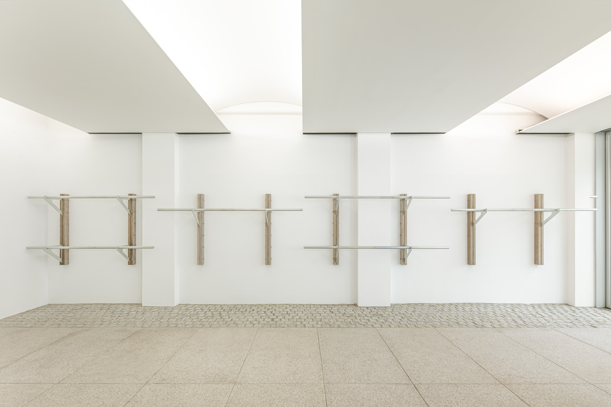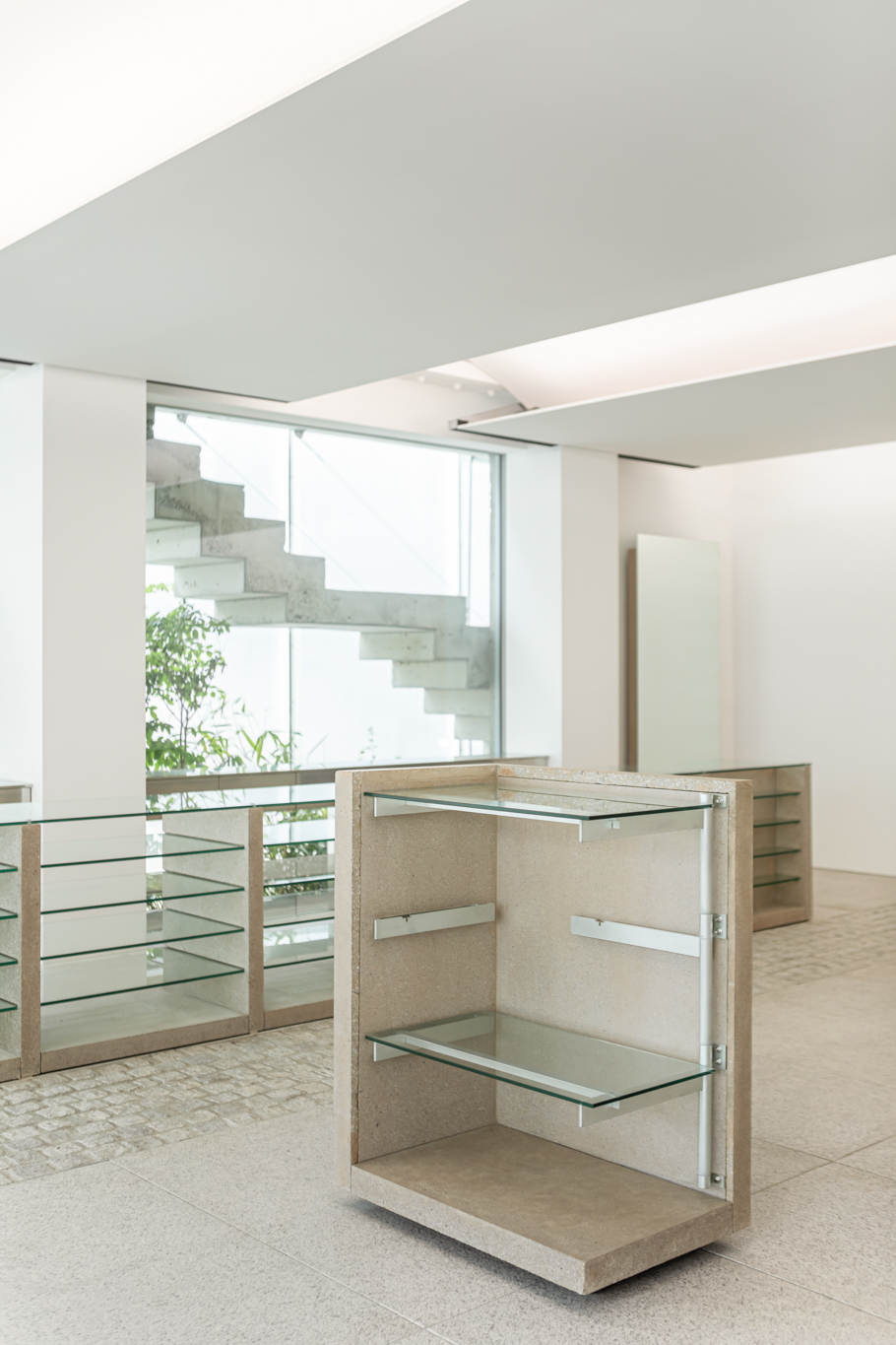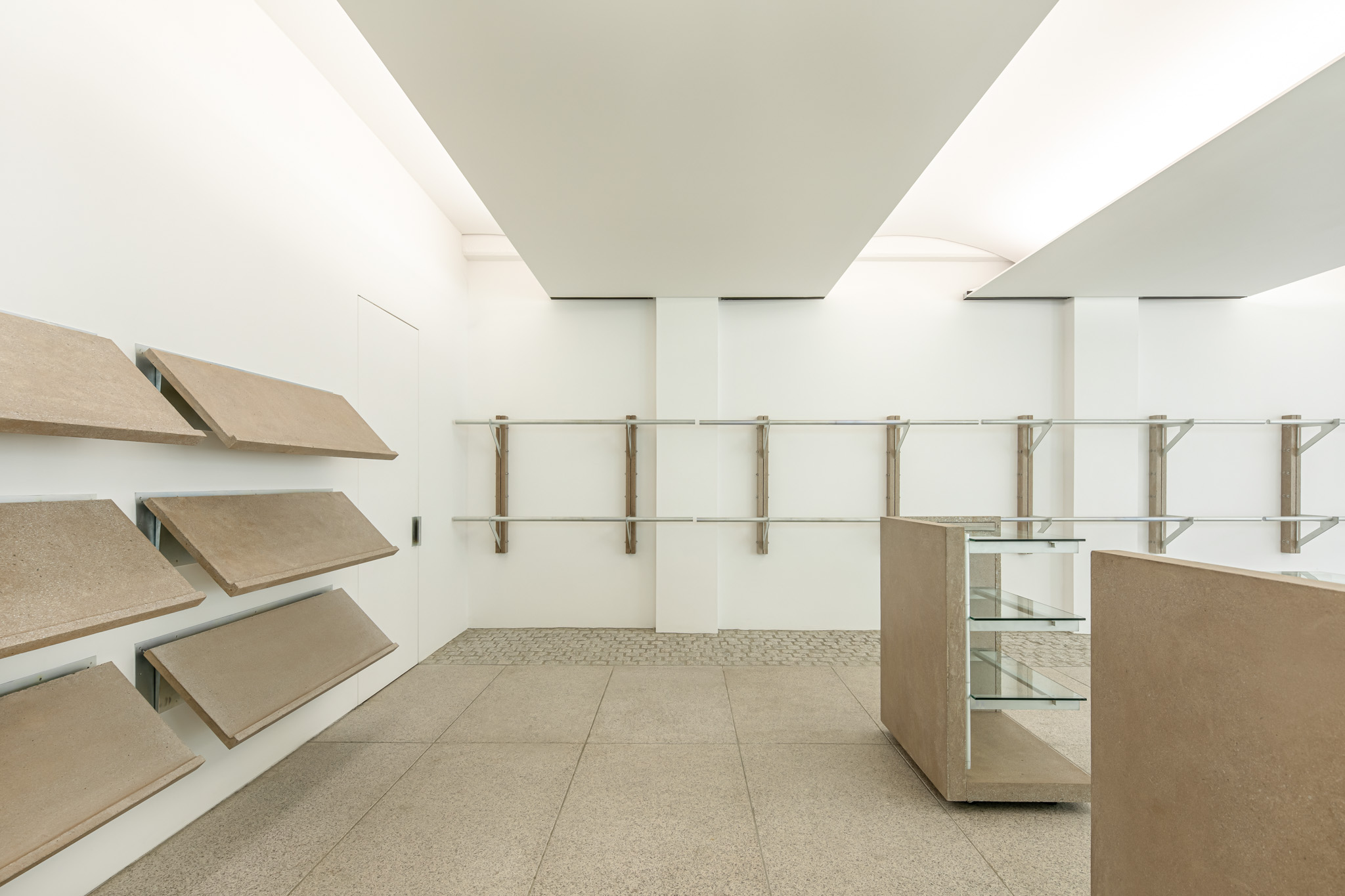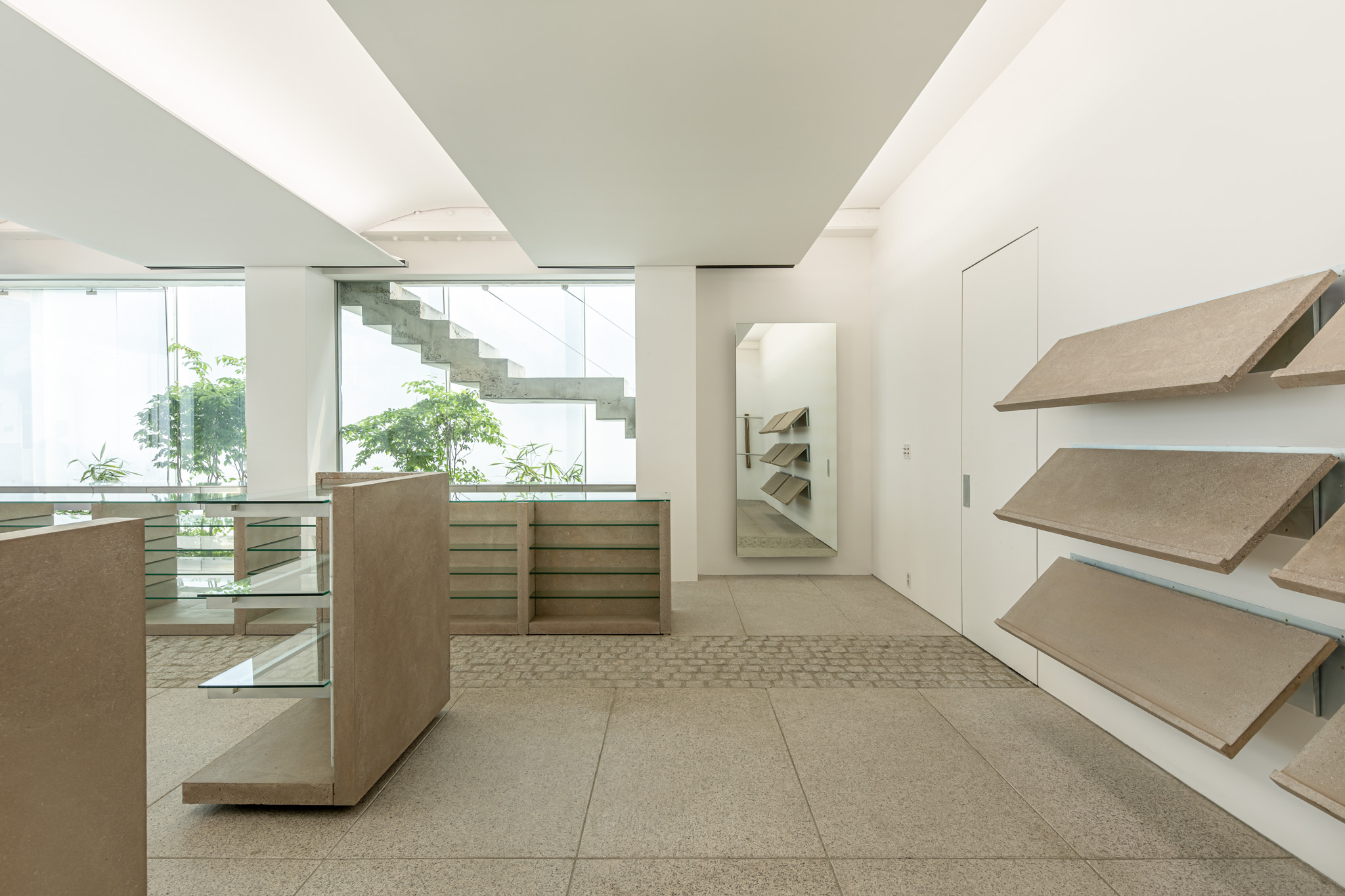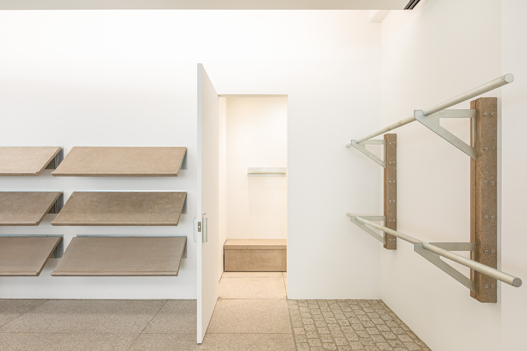 연희동에 위치한 카키스(khakis)의 가구 디자인. 색상의 명칭인 ‘카키(khaki)’에서 가져온 브랜드명에 착안해 사막 지형 군용품의 인상을 가진 가구를 만들었습니다. 실제 모래를 섞어 만든 콘크리트로 소재를 정하고, 실용적인 움직임을 드러내는 각종 금속 하드웨어가 그 자체로 디자인이 되도록 의도했습니다. 그렇기에 카키스의 가구는 접히고 펴지며, 분해 및 ‘헤쳐 모여’가 가능합니다.