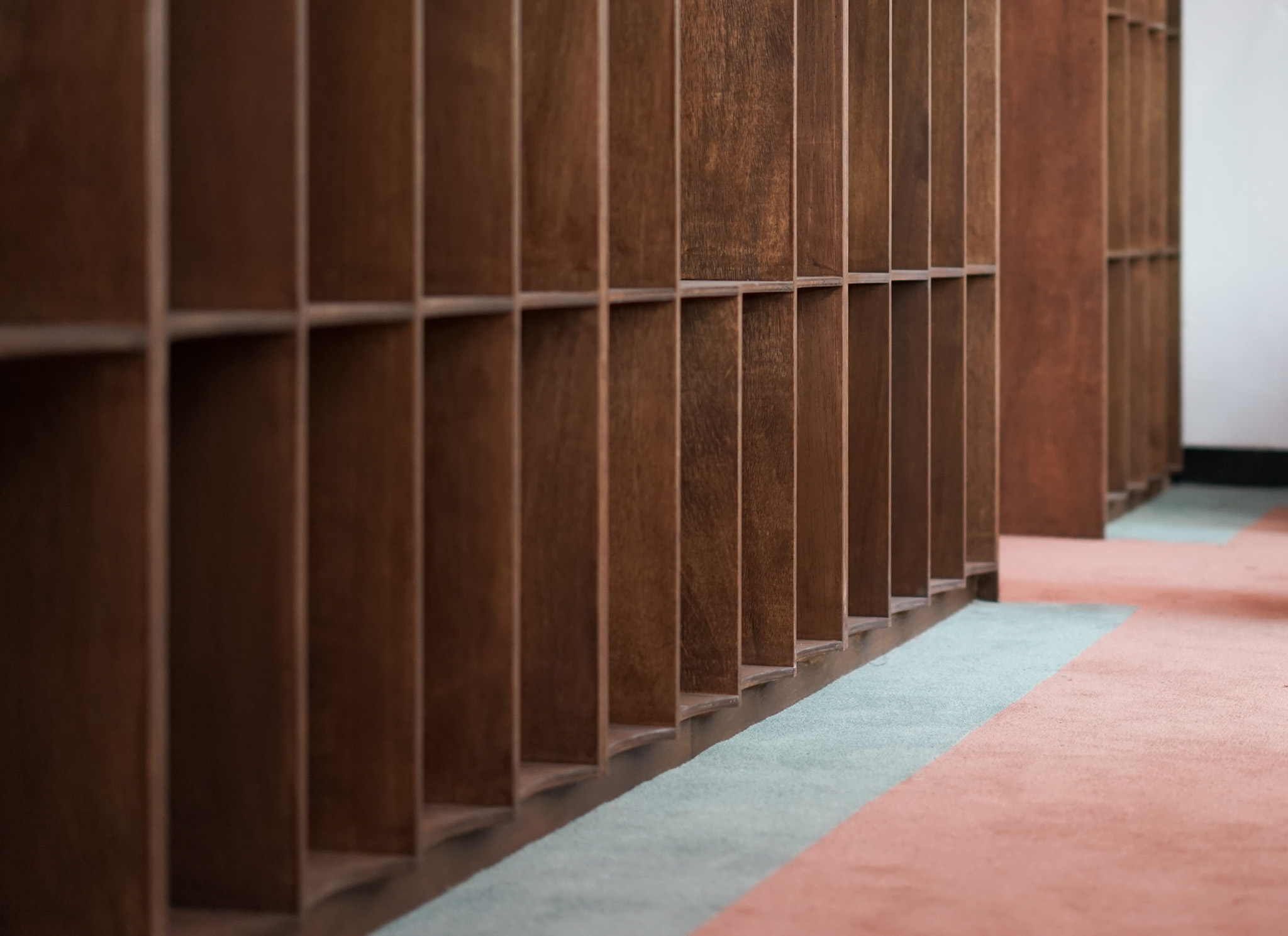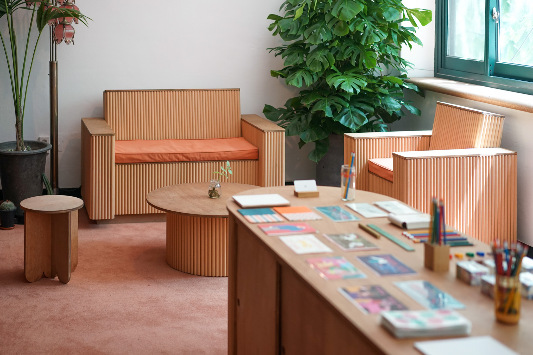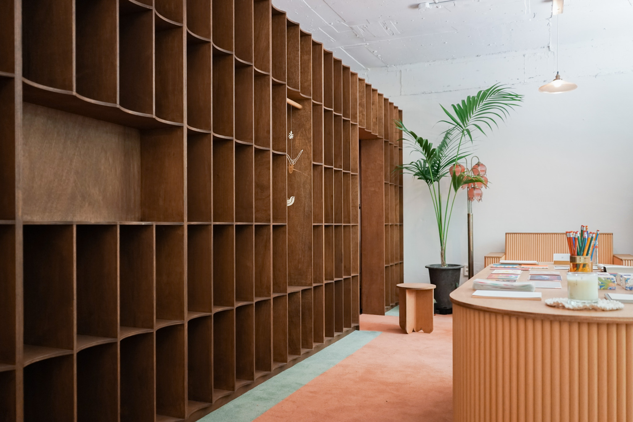 문구류를 디자인하고 판매하는 ‘소소문구’를 위한 쇼룸으로, 따뜻하고 감성적인 제품들의 특성이 잘 드러나게 공간을 구성했습니다. 특히 소소문구 노트가 가진 색감과 물성이 공간과 잘 이어지도록 목재를 활용한 가구를 만들고, 바닥에는 카펫을 깔아 질감을 강조했습니다.