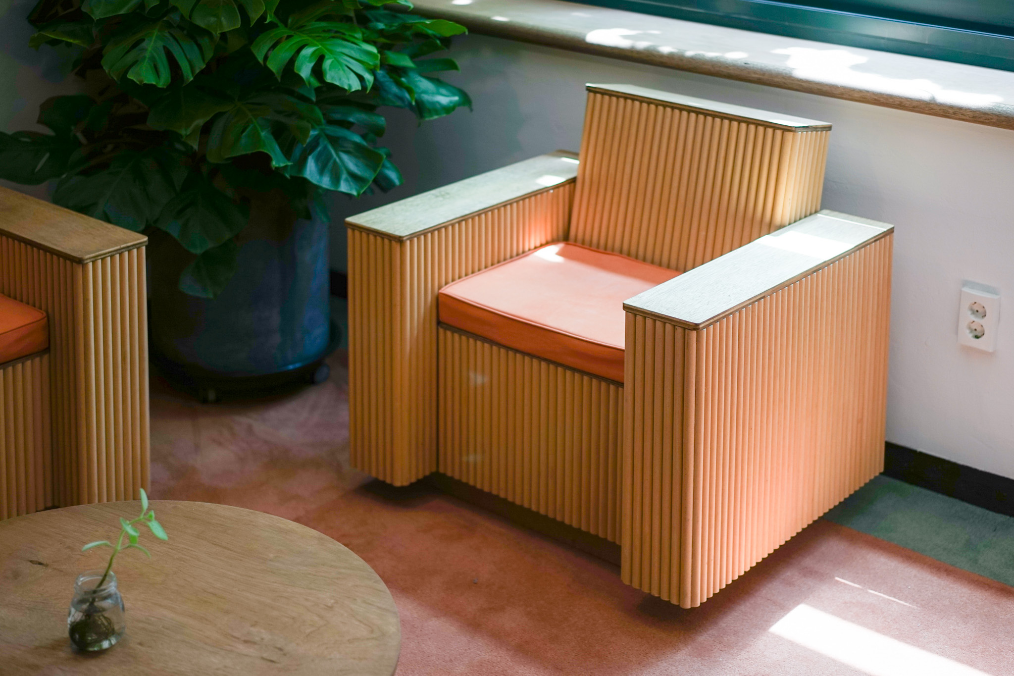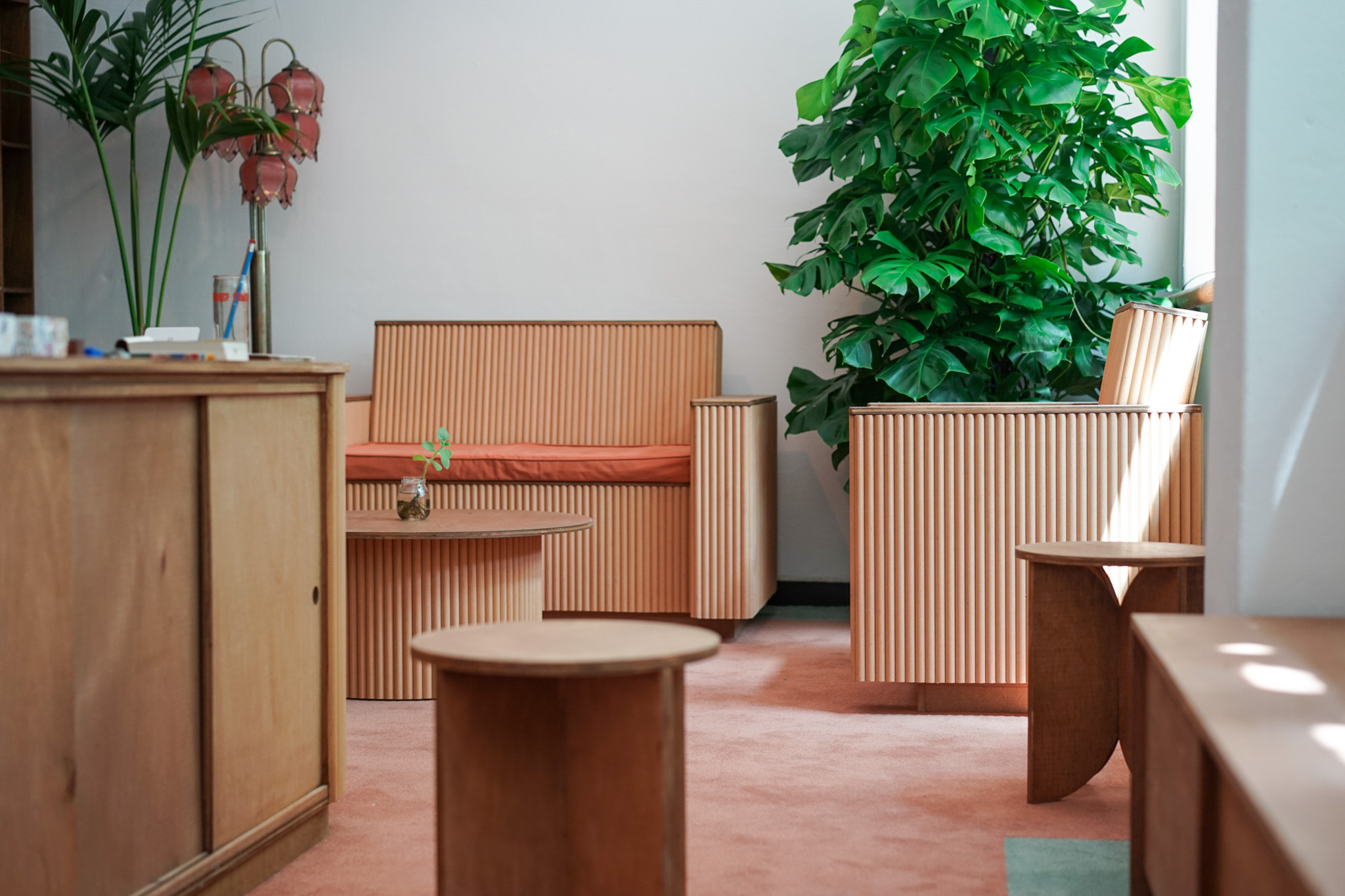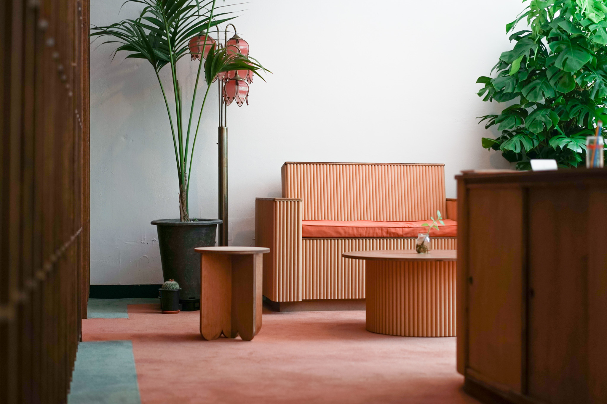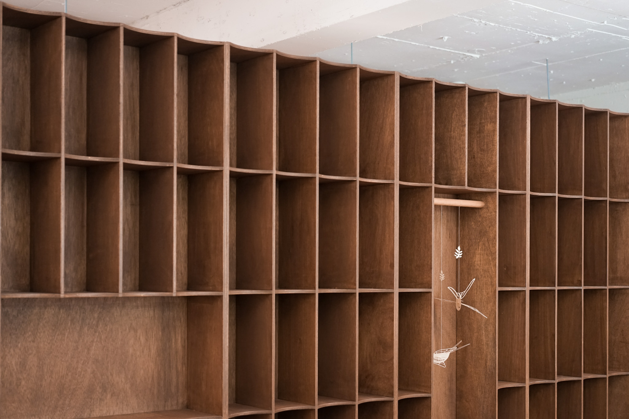 문구류를 디자인하고 판매하는 ‘소소문구’를 위한 쇼룸으로, 따뜻하고 감성적인 제품들의 특성이 잘 드러나게 공간을 구성했습니다. 특히 소소문구 노트가 가진 색감과 물성이 공간과 잘 이어지도록 목재를 활용한 가구를 만들고, 바닥에는 카펫을 깔아 질감을 강조했습니다.