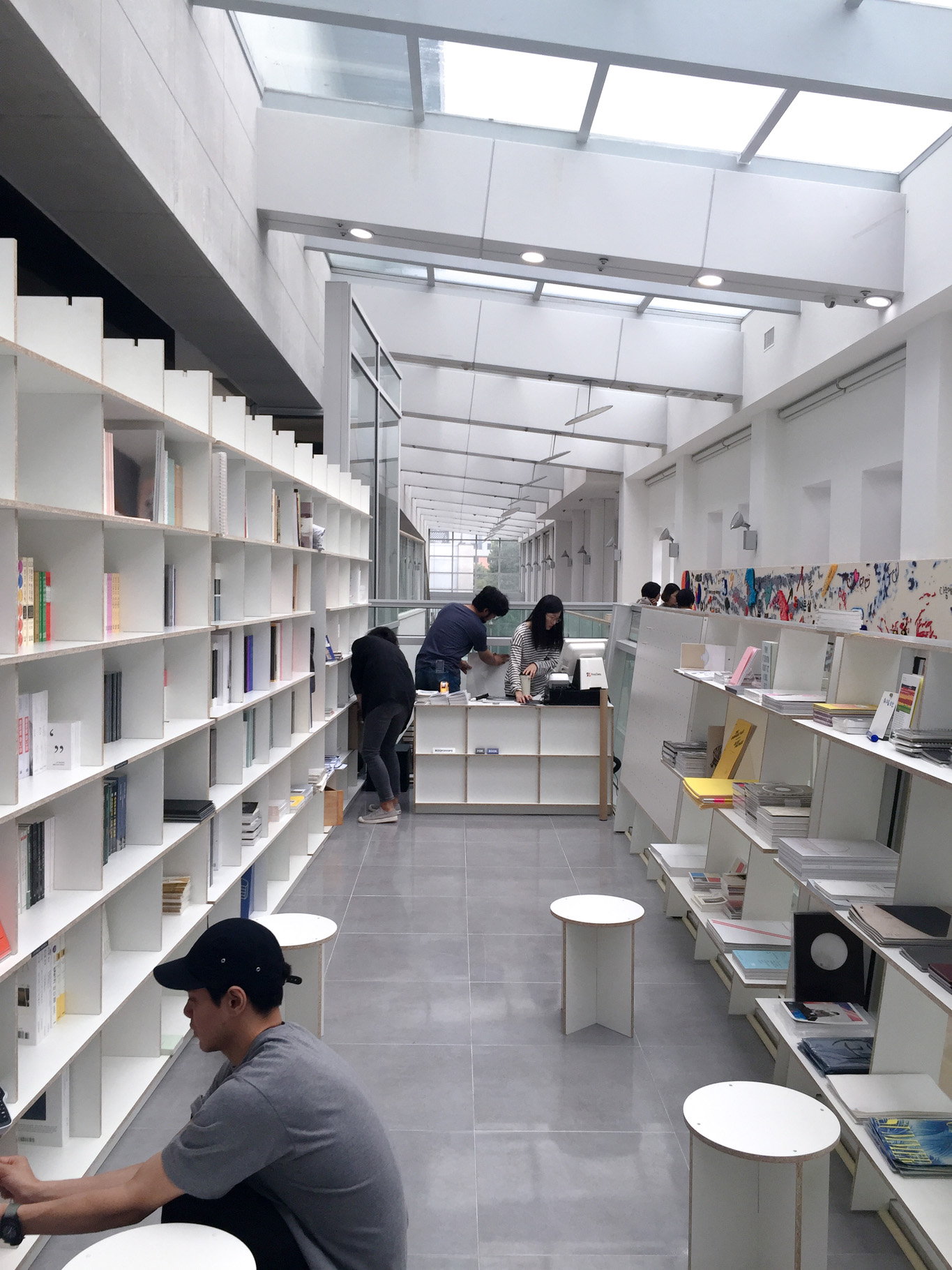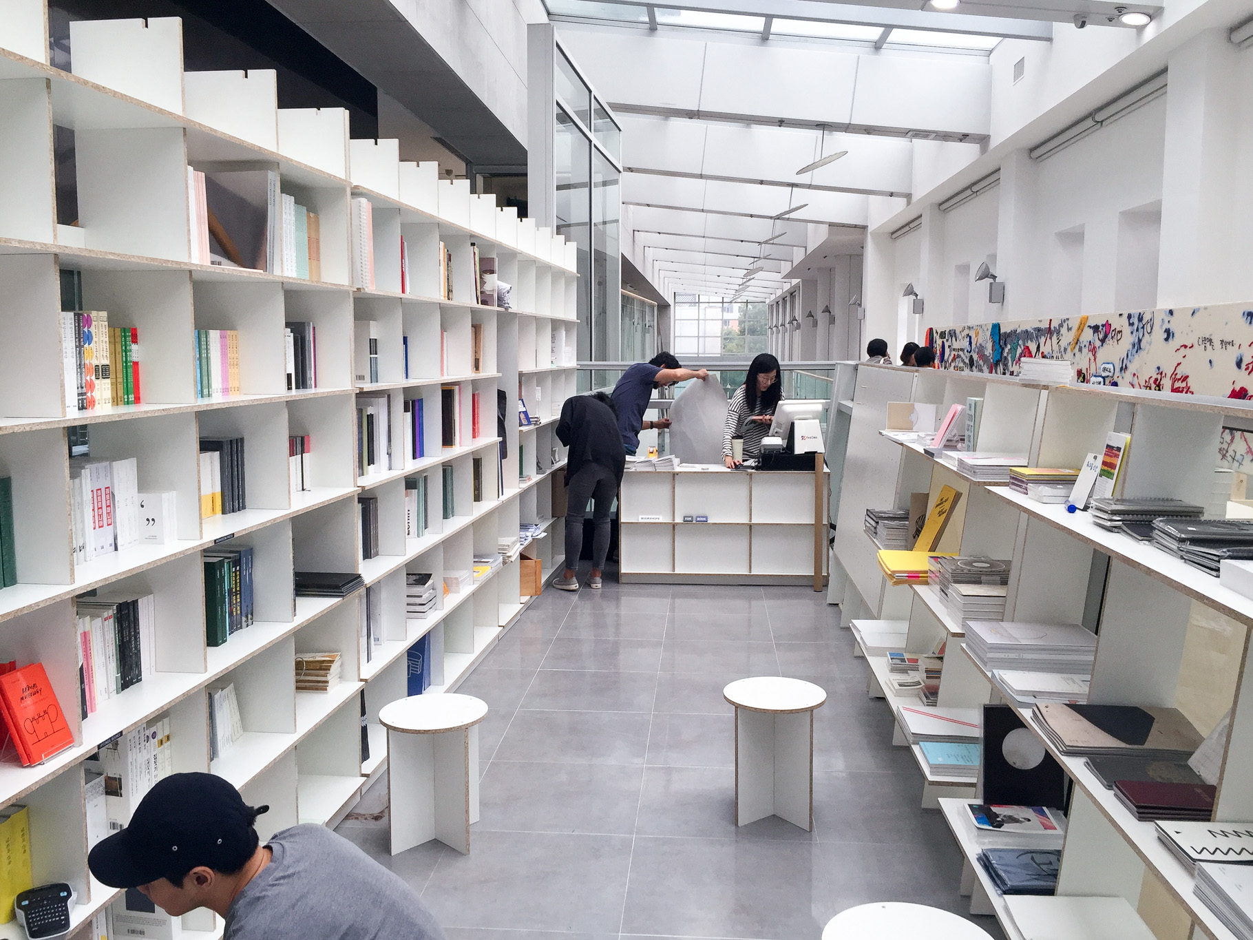 단기간 운영되었던 더북소사이어티의 서울시립미술관점. 파티클보드를 이용해 만든 서점입니다. 당시 별도의 가구 제작소를 알지 못했기에 최소한의 마감으로 가구를 직접 만들어야 했는데, 이때 양면에 필름이 붙어 있어 별도의 마감이 필요 없던 파티클보드를 종종 사용했었습니다.