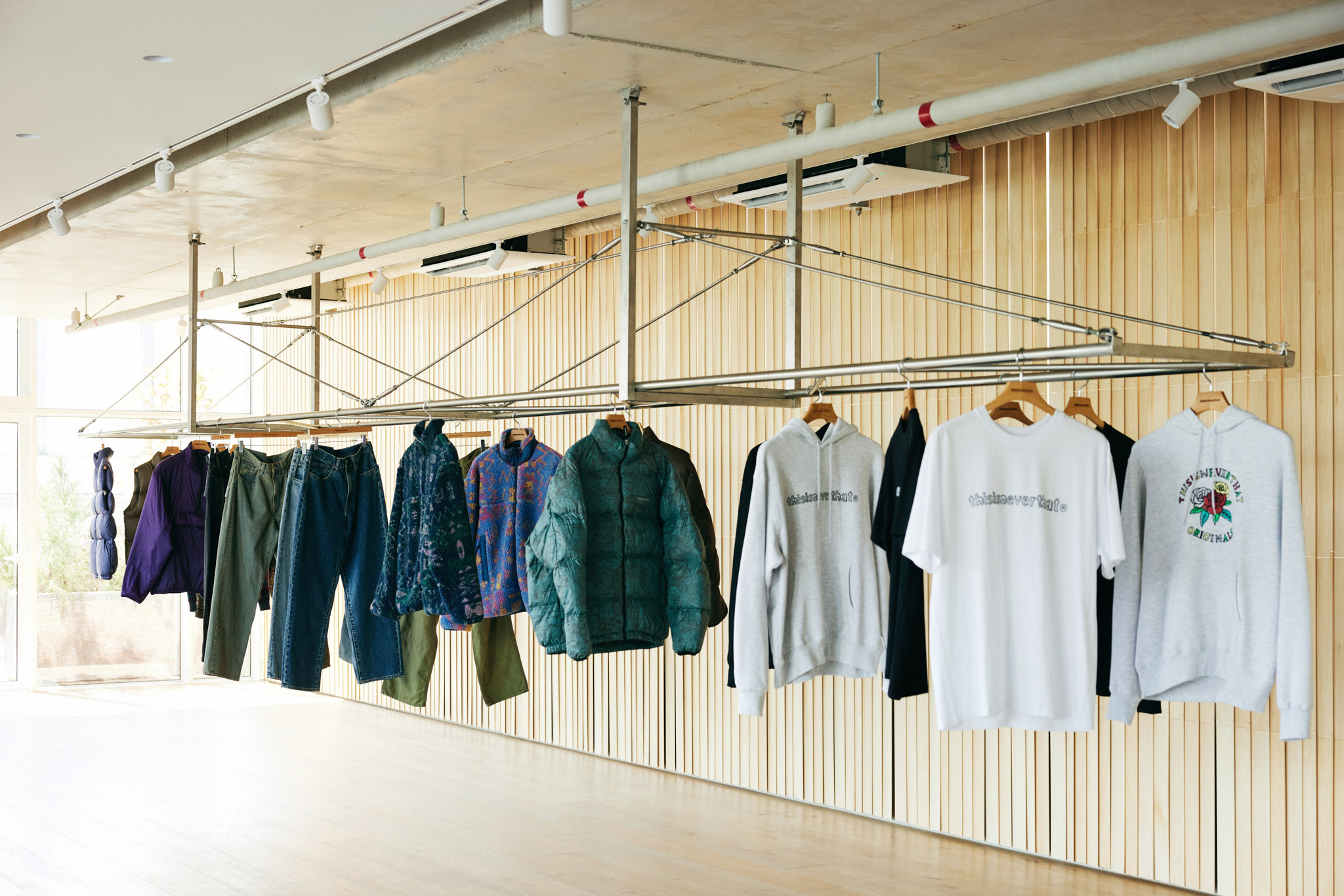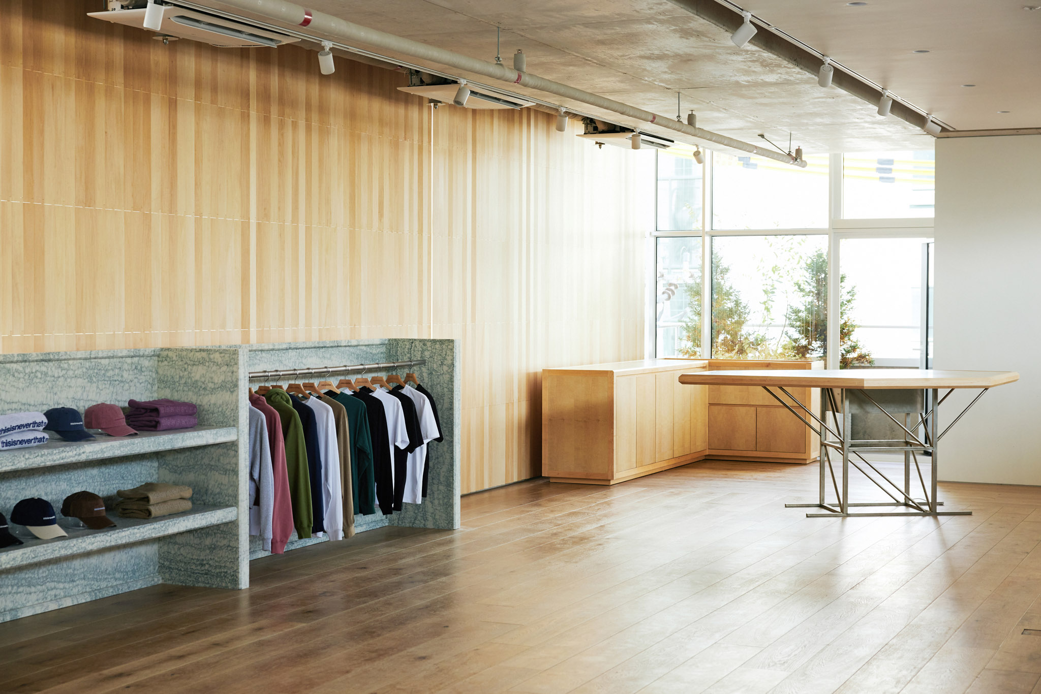 디스이즈네버댓 성수 플래그십 스토어는 디스이즈네버댓의 모회사인 JKND 신사옥 3층에 위치한 공간입니다. 지금까지 우리는 다양한 디스이즈네버댓 스토어를 설계해왔으며, 지난 프로젝트를 돌아보면 항상 오너의 다음 한마디에서 설계의 첫 단추를 끼웠던 것 같습니다.