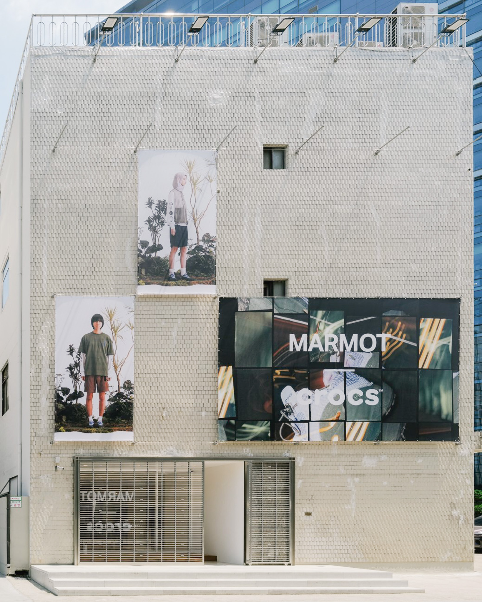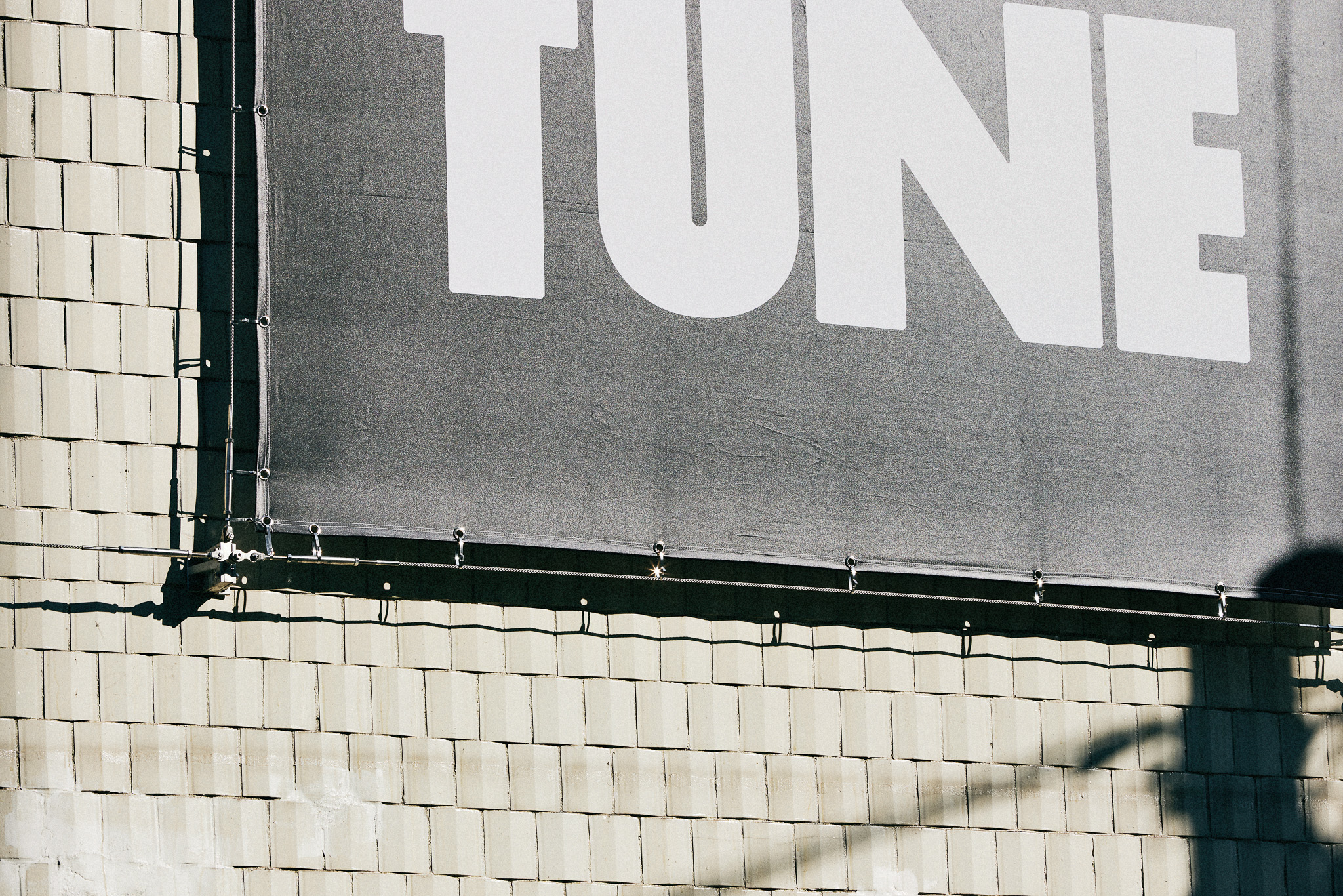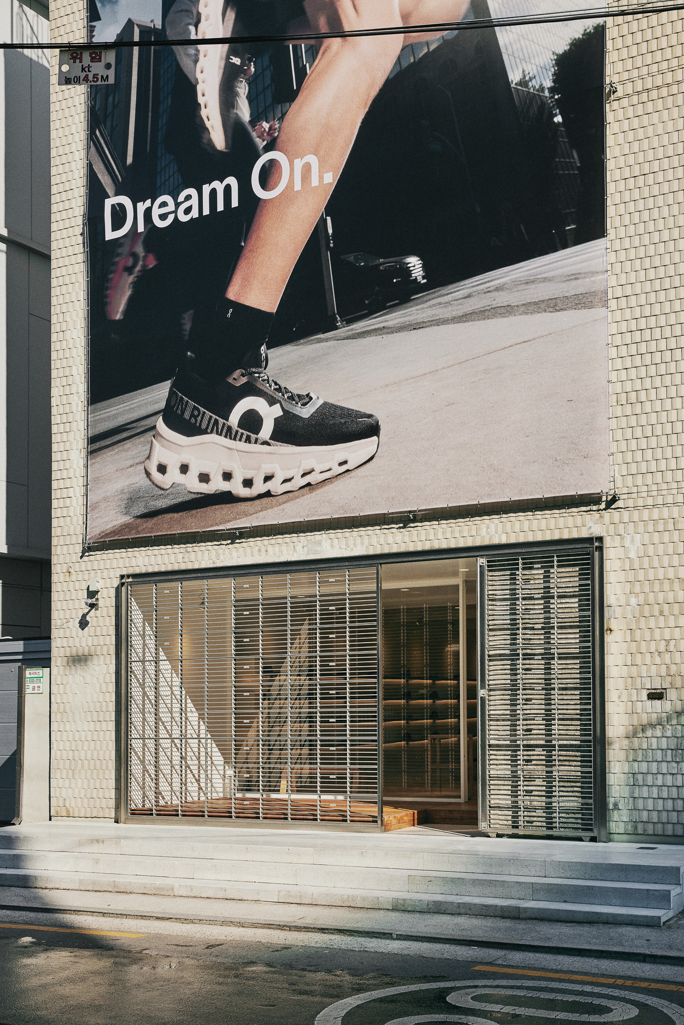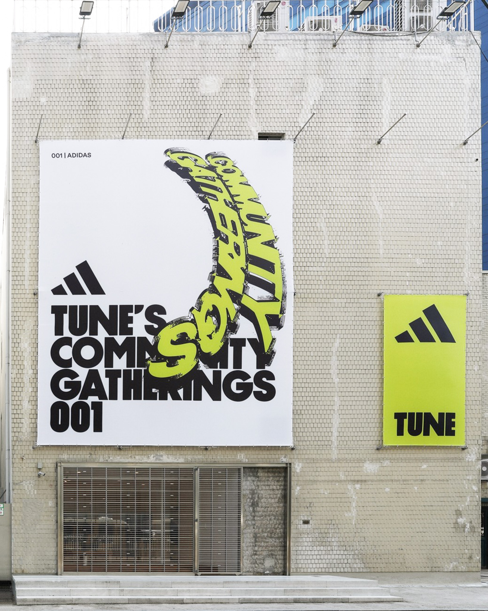 철제 그레이팅과 브래킷을 사형 주조로 제작해 공간 내외부의 주요 요소로 활용하고자 했습니다. 그레이팅은 오선보의 한 마디에 튠 로고가 온쉼표처럼 붙어 있는 모양. 출입구 전면에 배열해 공간의 정체성을 드러내며 내외부를 구분했고, 매장 내에서는 제품 진열용 선반으로 활용했습니다. 브래킷 역시 곳곳에 사용했는데, 특히 건물 외벽에 점 단위 그리드 시스템으로 설치해 현수막 등 대형 홍보물을 자유롭게 탈부착할 수 있도록 한 점이 특징적입니다.