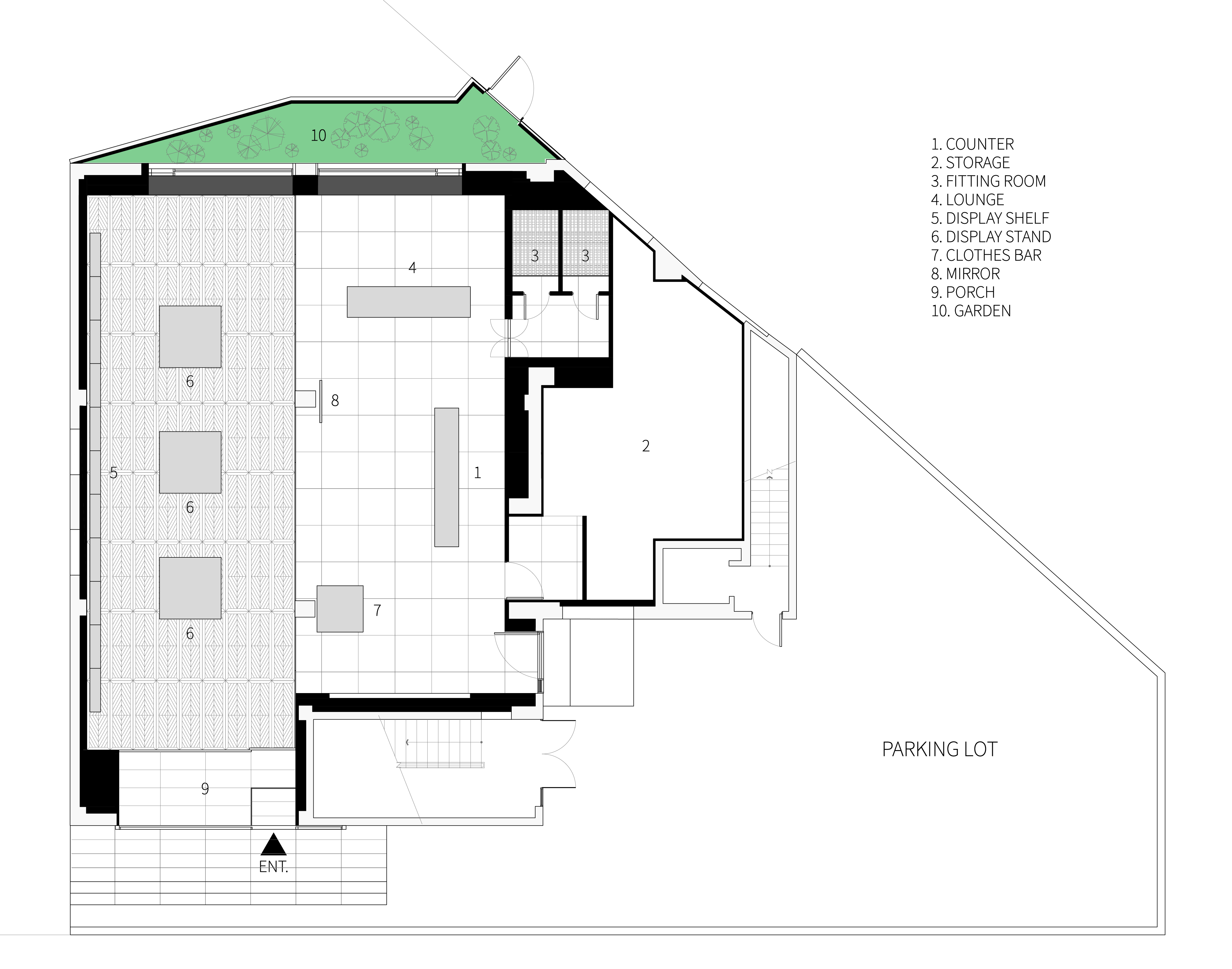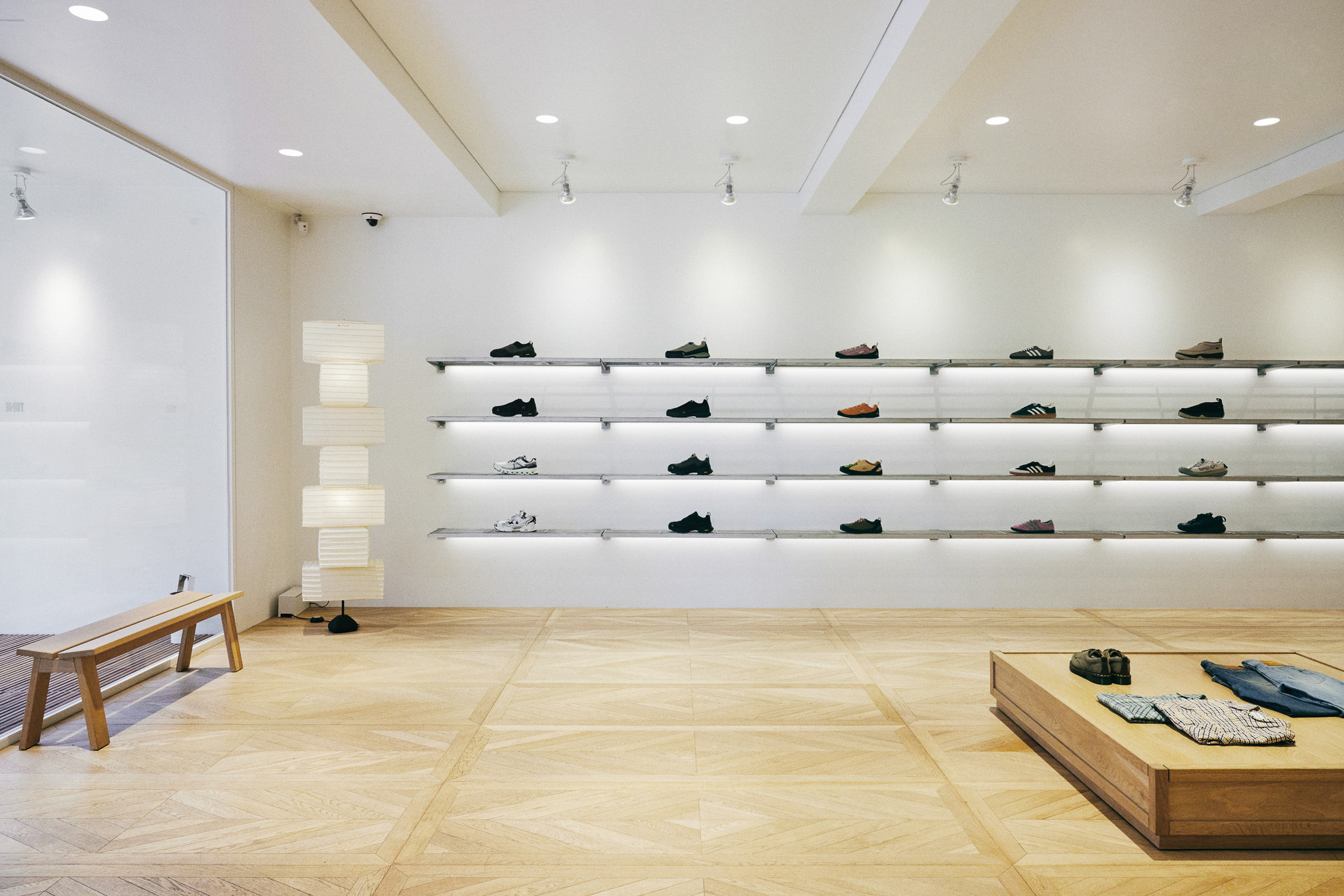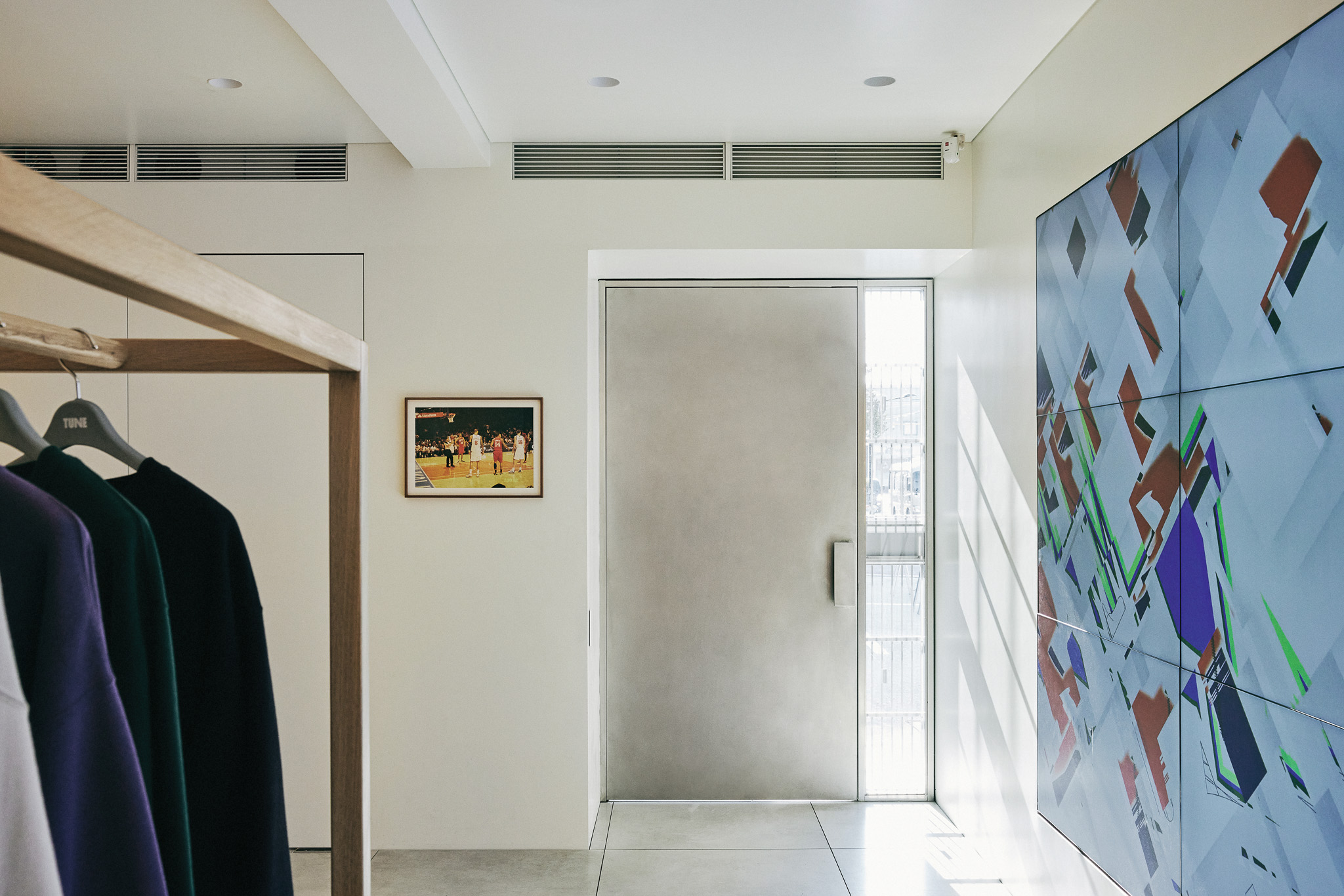 튠(TUNE)은 서울시 성동구 성수동에 위치한 셀렉트숍으로, 유스컬처를 아우르는 다양한 브랜드의 신발과 의류를 다룹니다. 공간 디자인 콘셉트는 다음 세 가지 방향성을 고려하여 설정했습니다. 이름이 내포하는 음악적인 정체성(‘선율’, ‘조율하다’ 등)을 모티브로 할 것, 손으로 만들어낸 공예적인 질감을 줄 것, NBA 마니아인 클라이언트의 취향을 반영할 것.