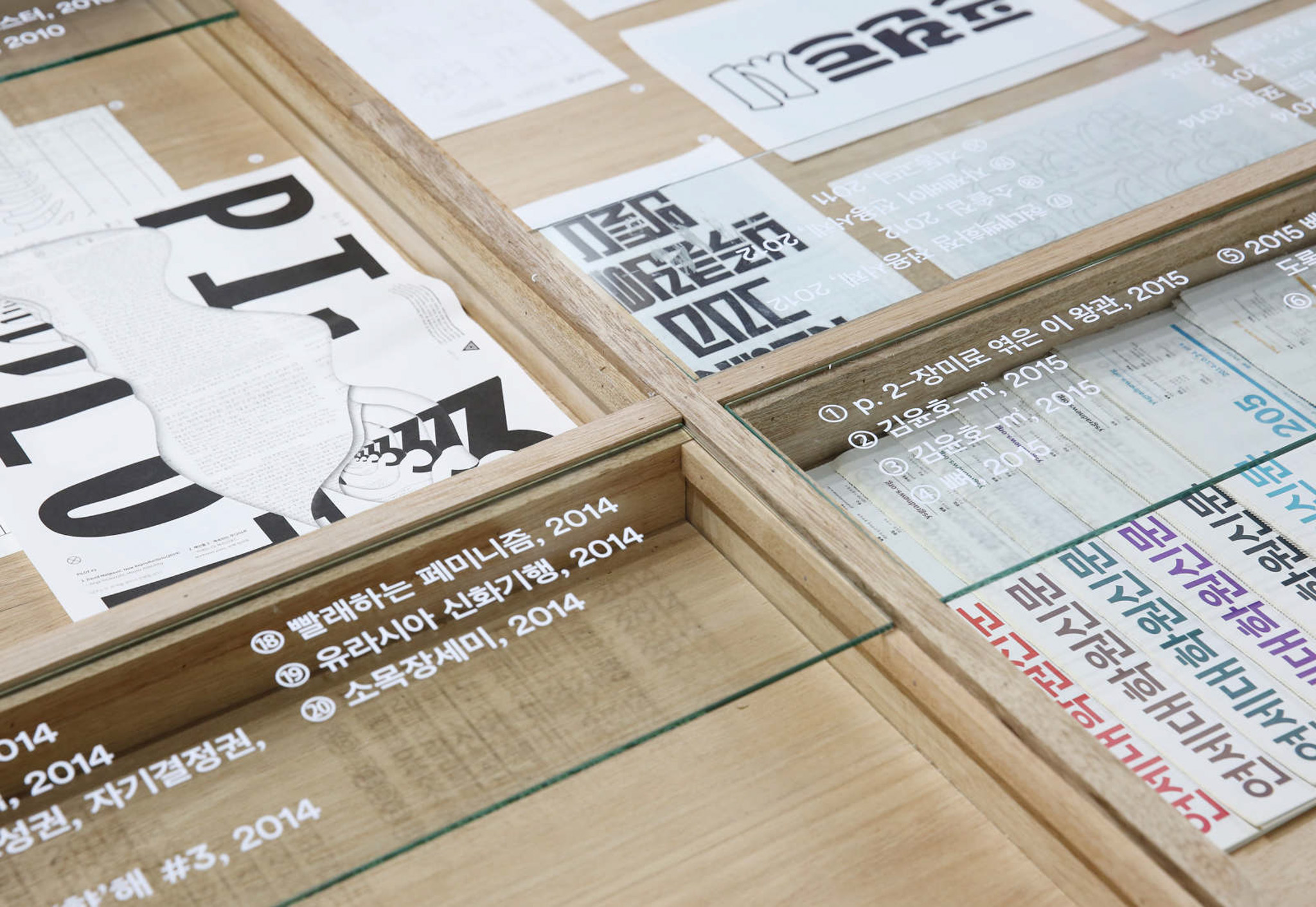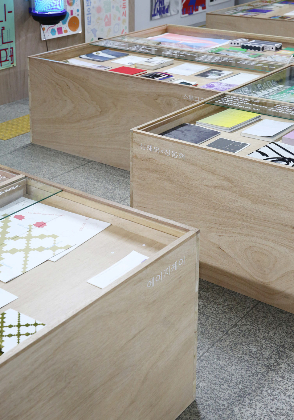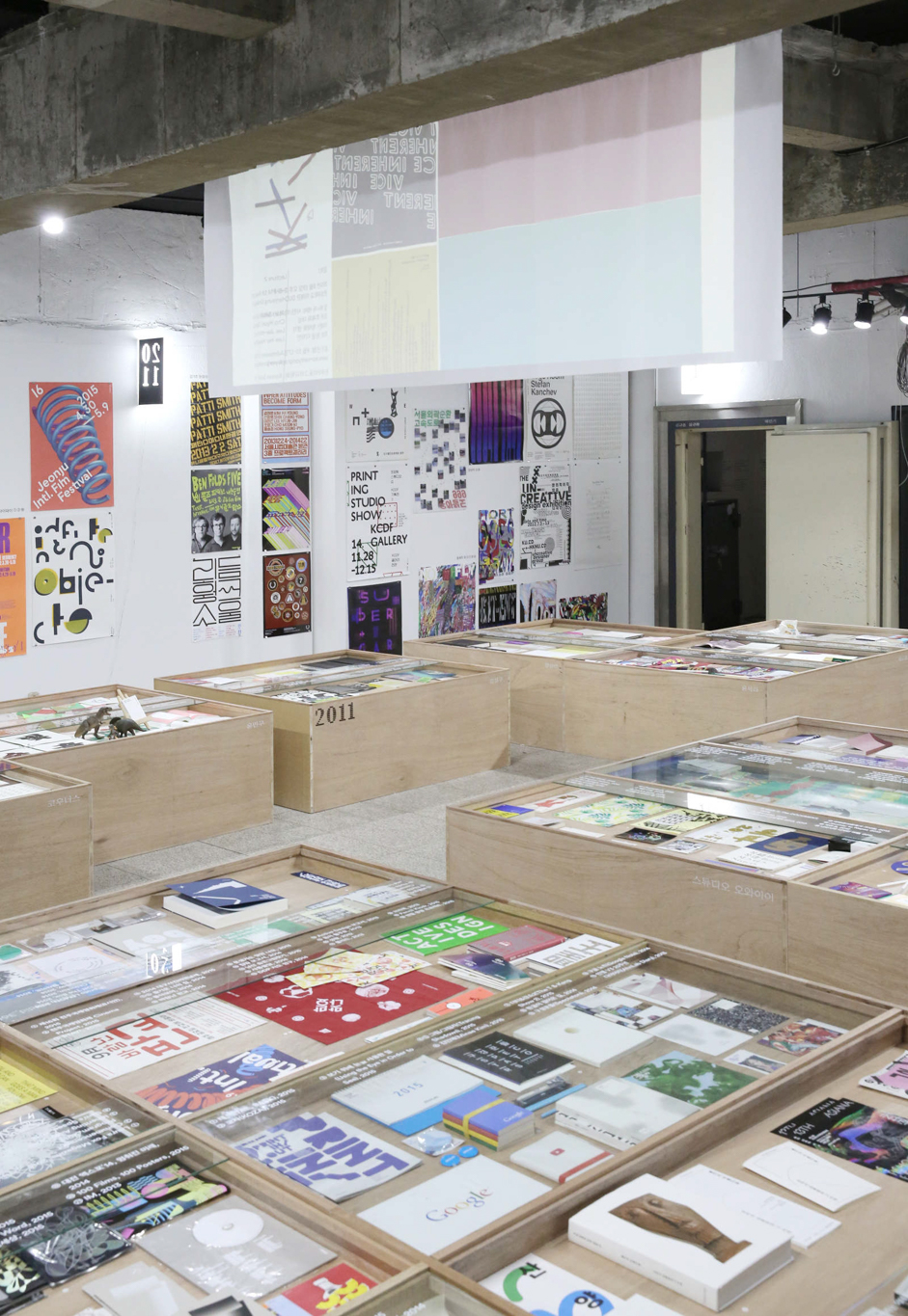 스몰보다 작은 엑스트라스몰 그래픽 스튜디오를 조망하는 전시. 스튜디오 창립 년도에 따라 군으로 묶고, 한눈에 조망할 수 있는 높이의 전시대에 각각의 스튜디오 작업물을 올려두어 열람하도록 하였습니다.